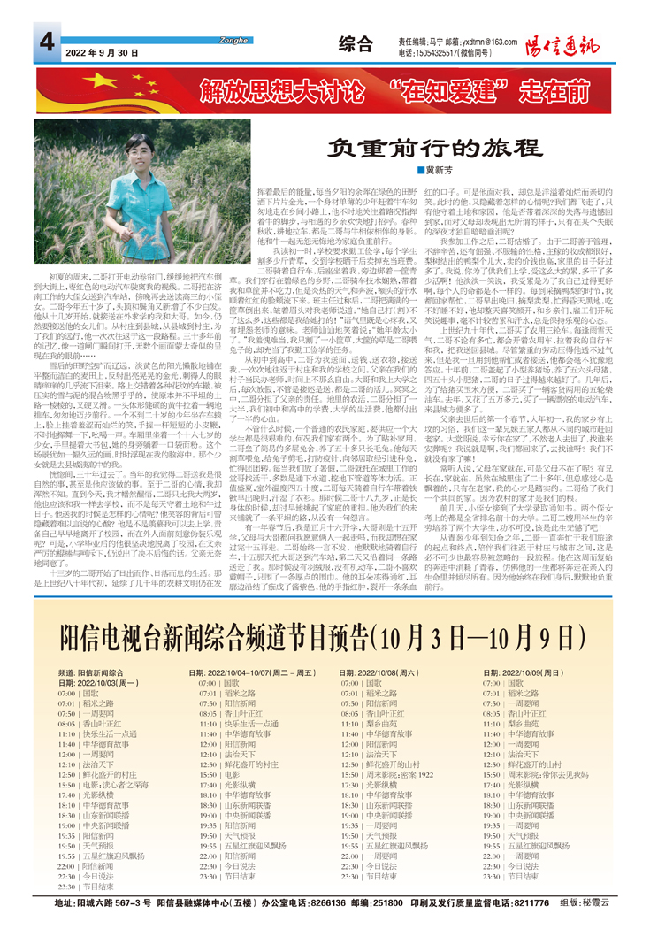 阳信电视台新闻综合频道节目预告(10月3日—10月9日)