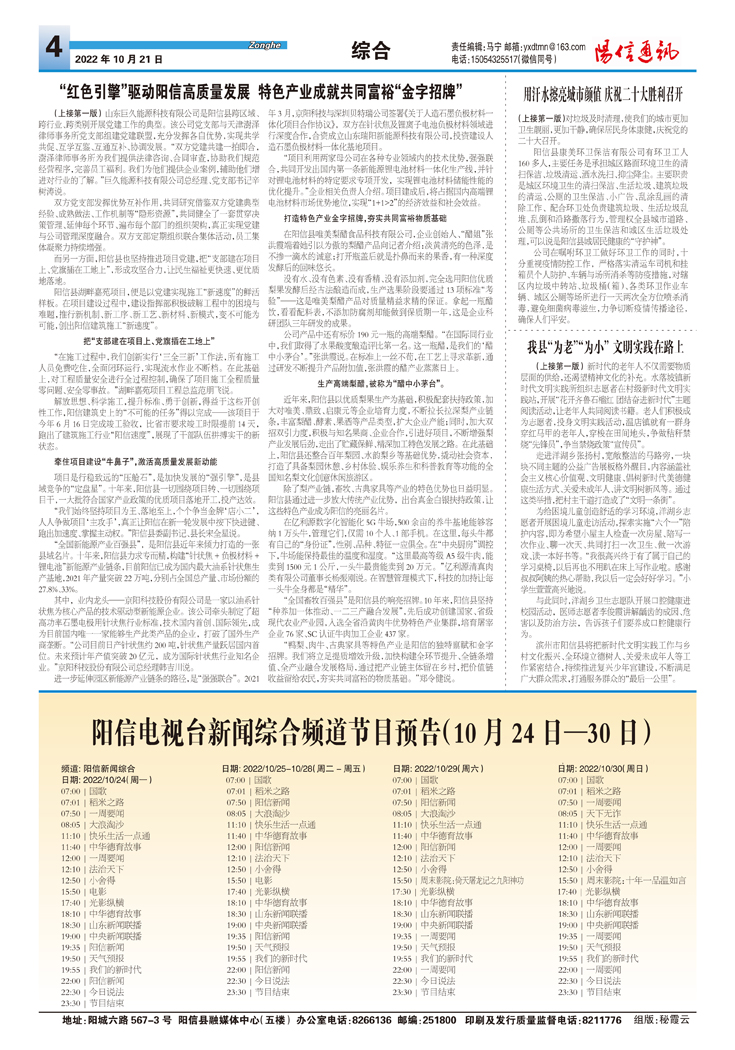 阳信电视台新闻综合频道节目预告(10月24日—30日)