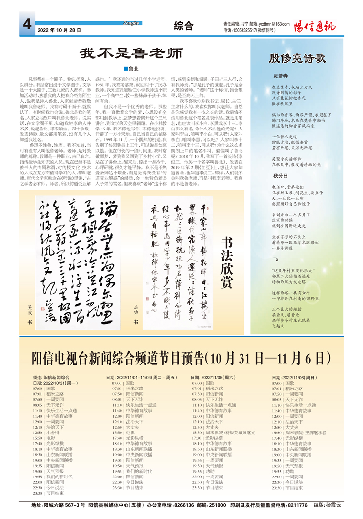 阳信电视台新闻综合频道节目预告(10月31日—11月6日)