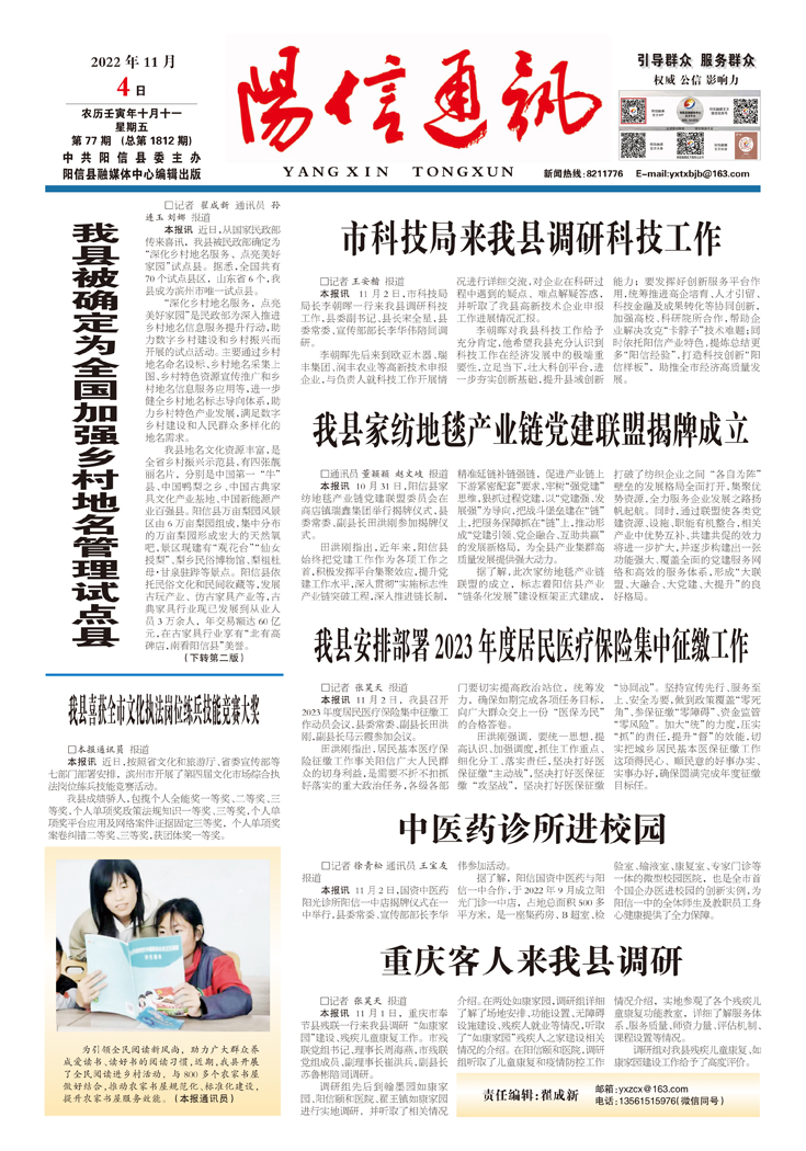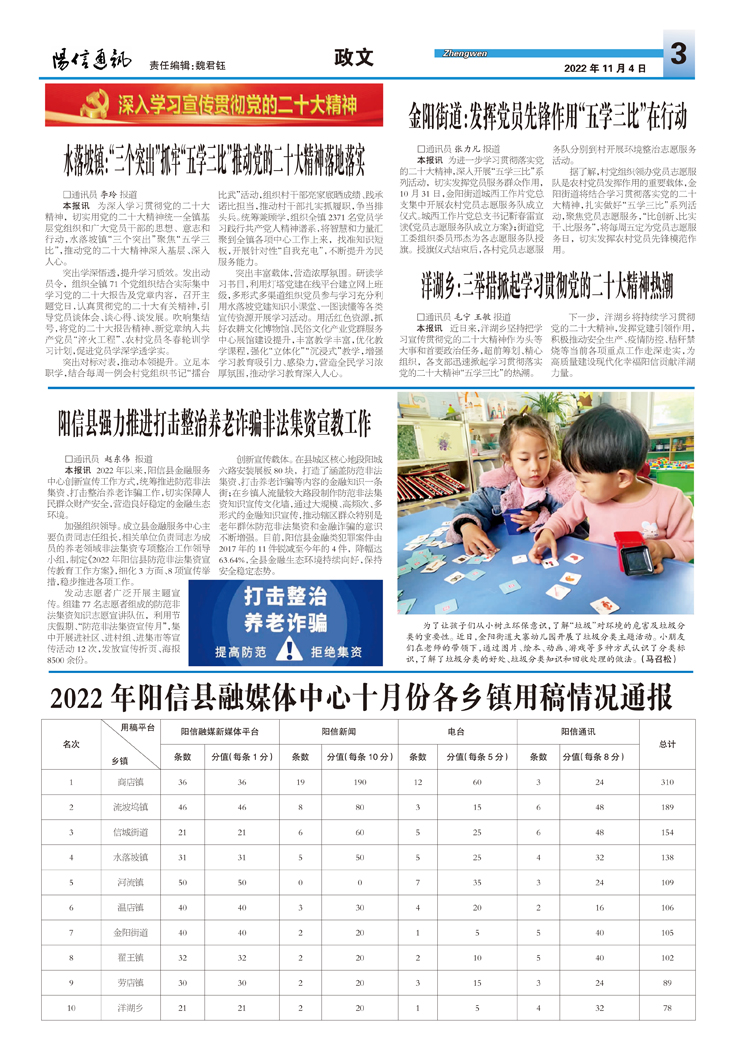 2022年阳信县融媒体中心十月份各乡镇用稿情况通报