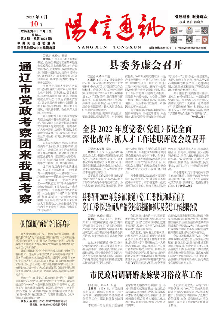 全县2022 年度党委(党组)书记全面 深化改革、抓人才工作述职评议会议召开