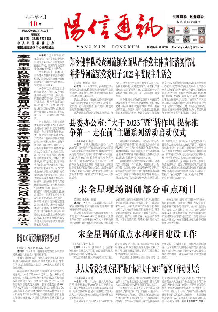 李春田率队检查阳信县全面从严治党主体责任落实情况,并指导县委常委会2022年度民主生活会