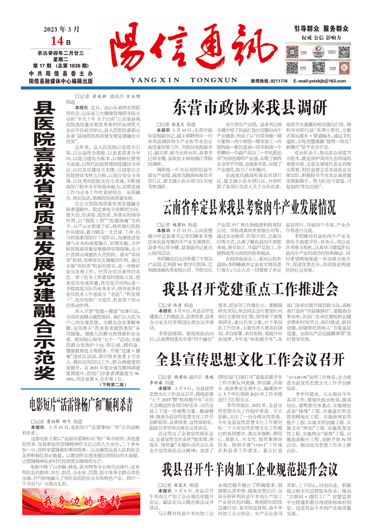 2023年阳信县融媒体中心二月份各乡镇用稿情况通报