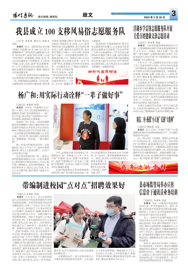 洋湖乡学雷锋志愿服务队开展关爱百姓健康义诊志愿活动