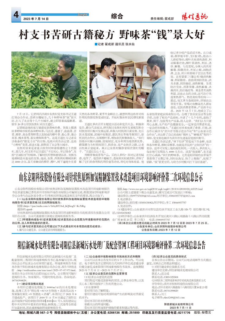 阳信新城水处理有限公司阳信县新城污水处理厂及配套管网工程项目环境影响评价第二次环境信息公告