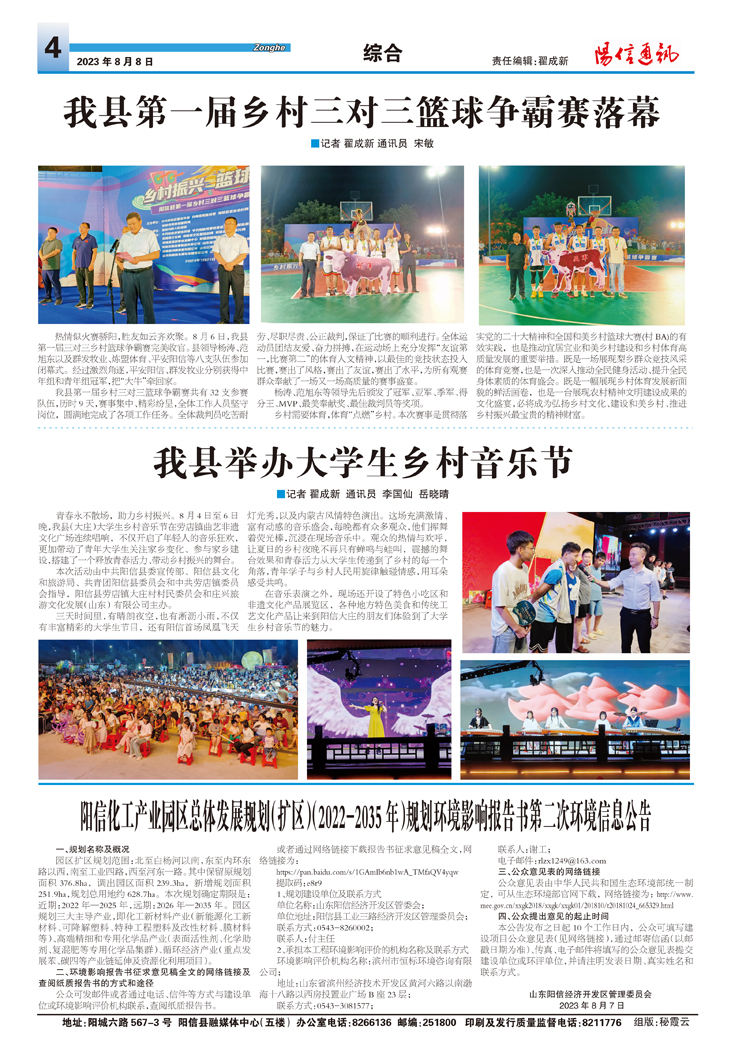阳信化工产业园区总体发展规划(扩区)(2022-2035年)规划环境影响报告书第二次环境信息公告