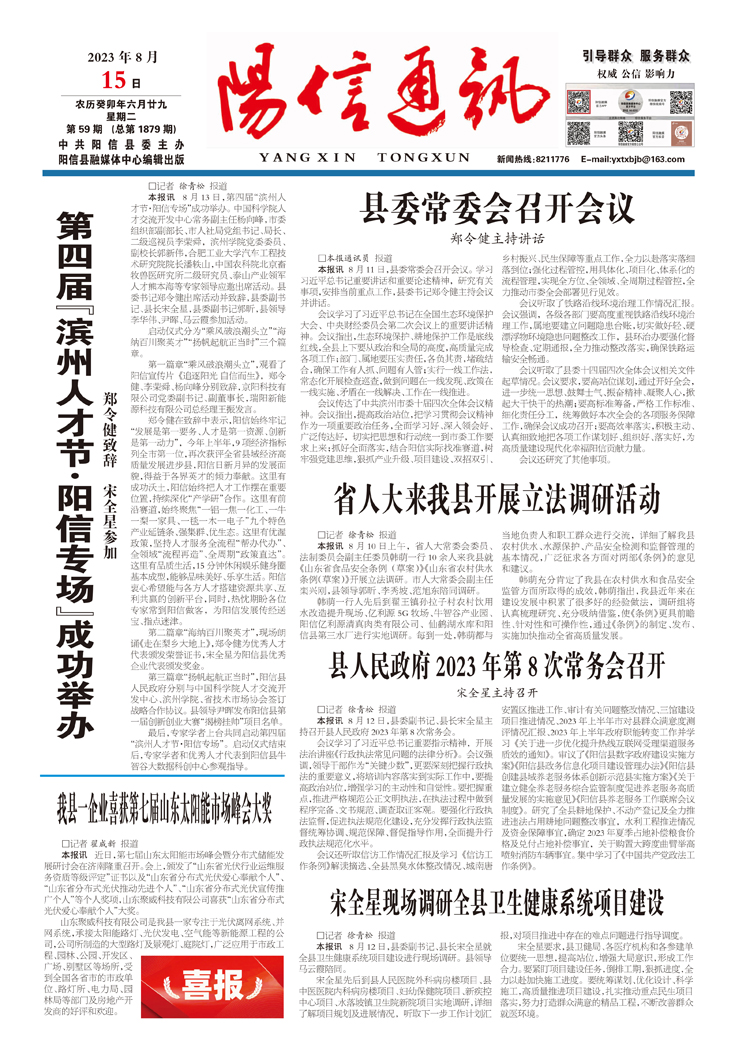 第四届“滨州人才节·阳信专场”成功举办 郑令健致辞 宋全星参加