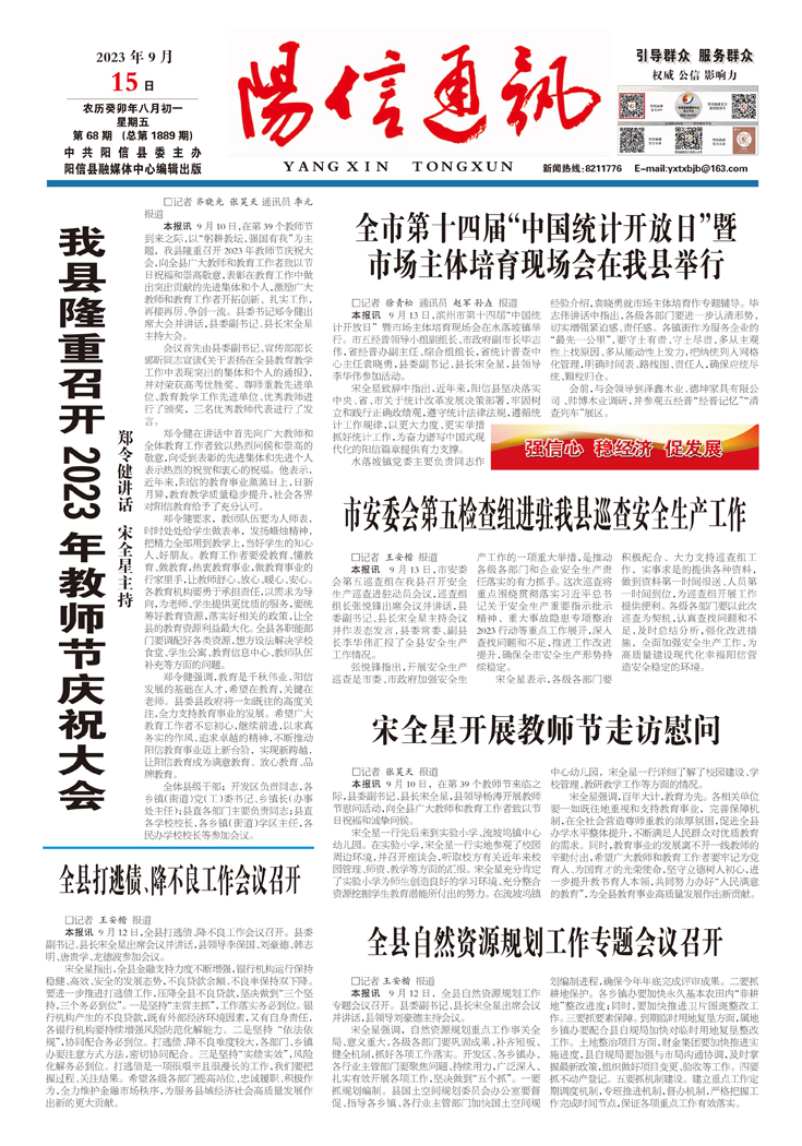 我县隆重召开2023年教师节庆祝大会 郑令健讲话 宋全星主持
