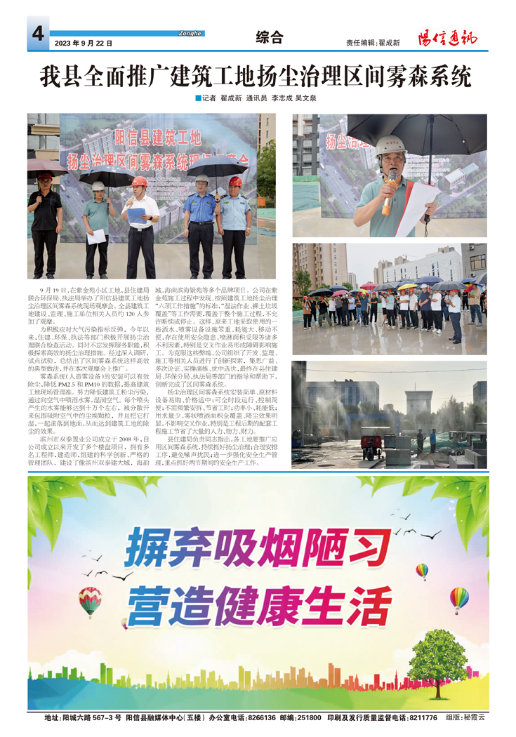我县全面推广建筑工地扬尘治理区间雾森系统