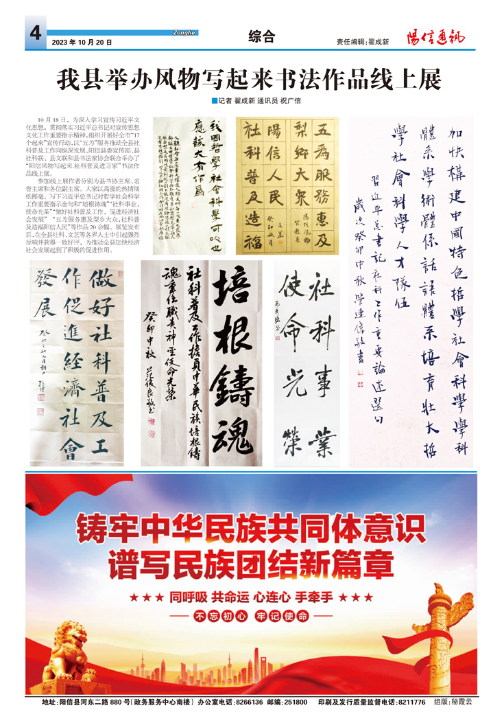 我县举办风物写起来书法作品线上展