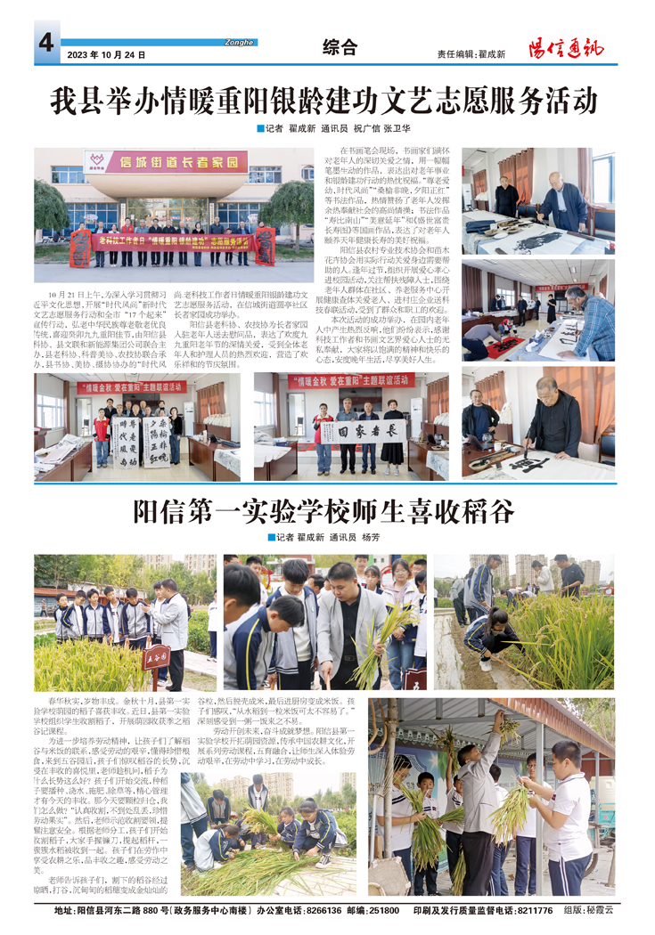阳信第一实验学校师生喜收稻谷