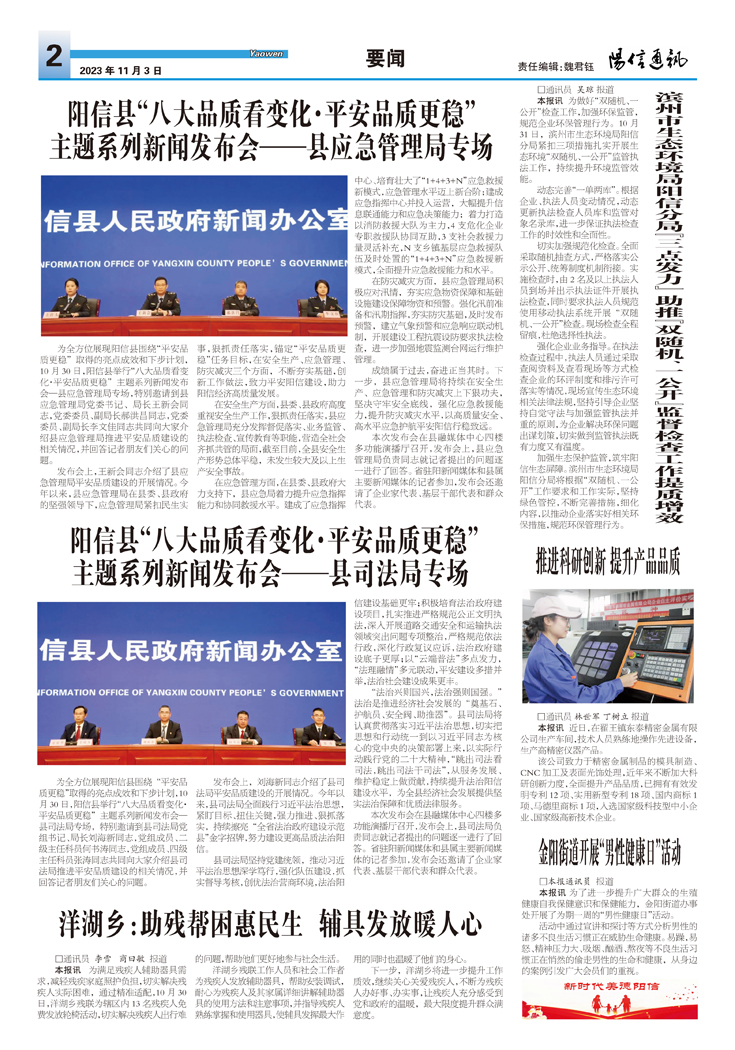阳信县“八大品质看变化·平安品质更稳” 主题系列新闻发布会——县司法局专场