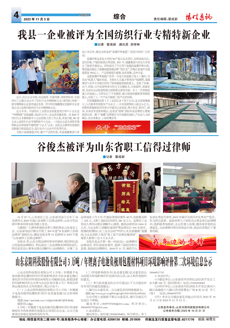 山东京阳科技股份有限公司3万吨/年锂离子电池负极用包覆材料项目环境影响评价第二次环境信息公示