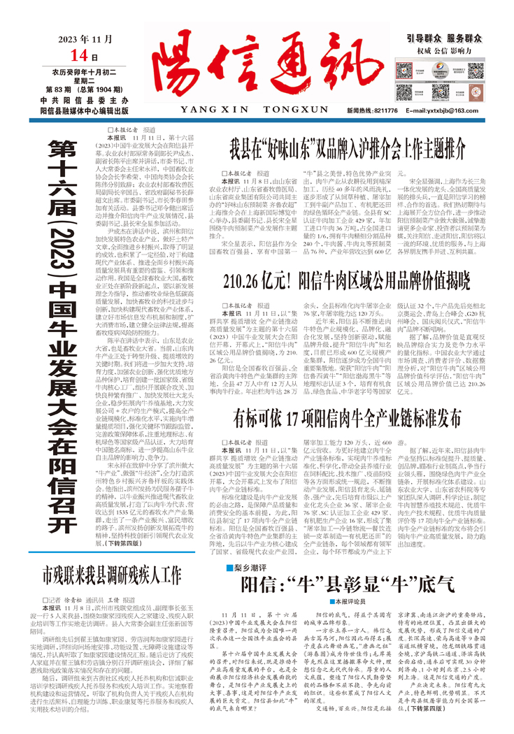 210.26亿元!阳信牛肉区域公用品牌价值揭晓