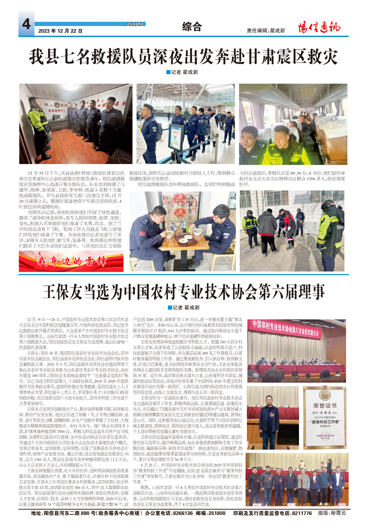 王保友当选为中国农村专业技术协会第六届理事