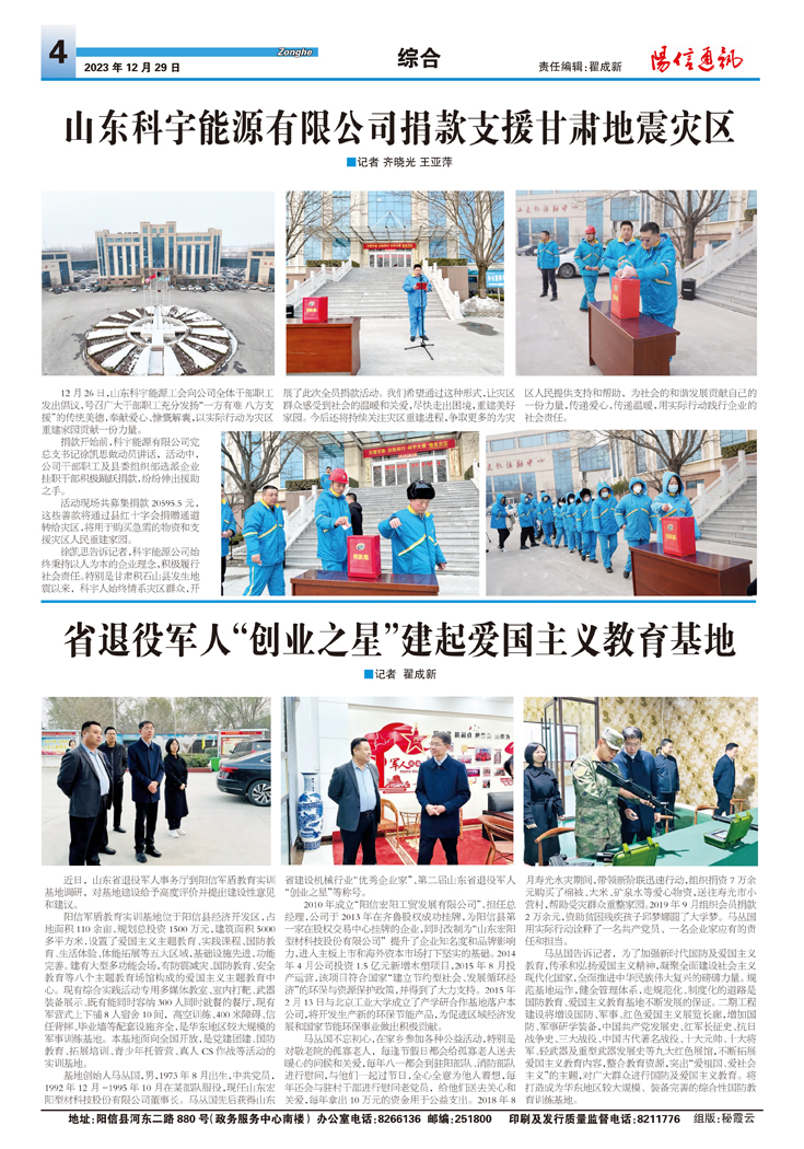 山东科宇能源有限公司捐款支援甘肃地震灾区
