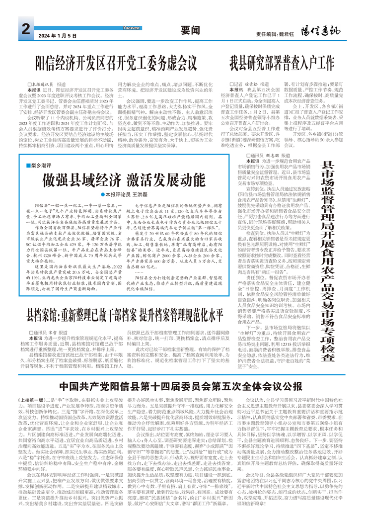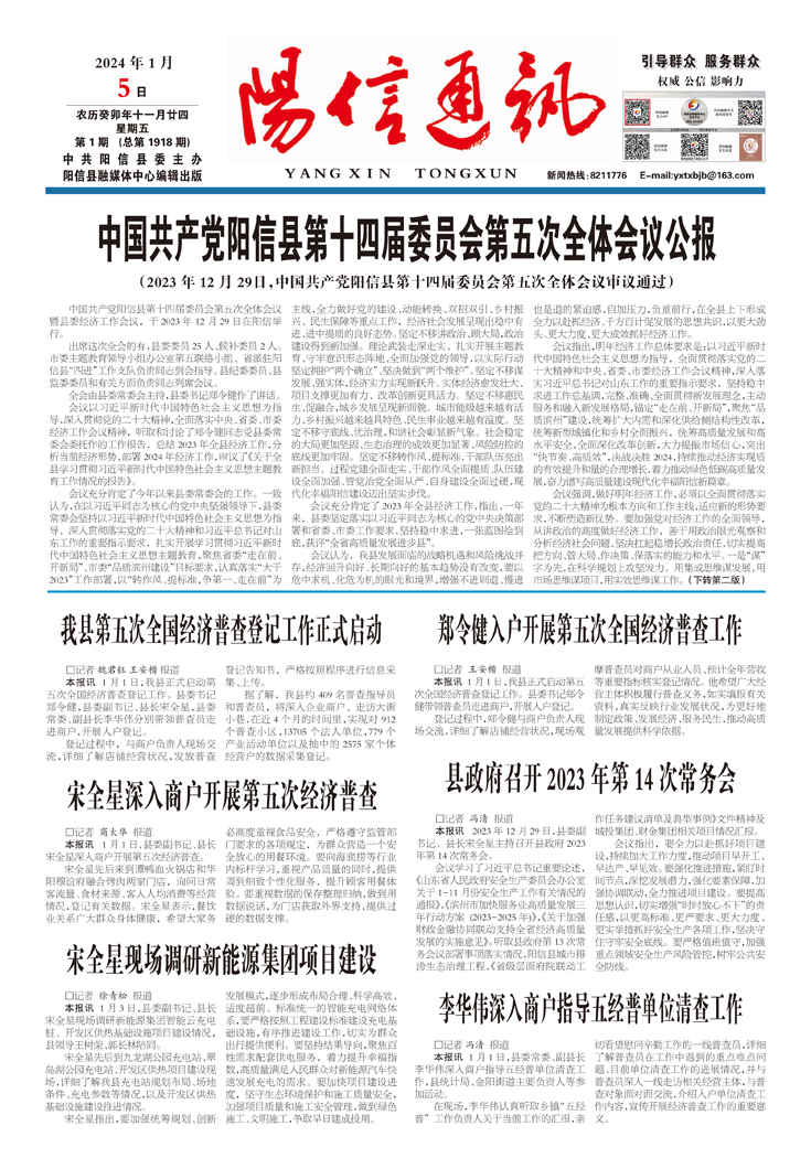 中国共产党阳信县第十四届委员会第五次全体会议公报 (2023年12月29日,中国共产党阳信县第十四届委员会第五次全体会议审议通过)