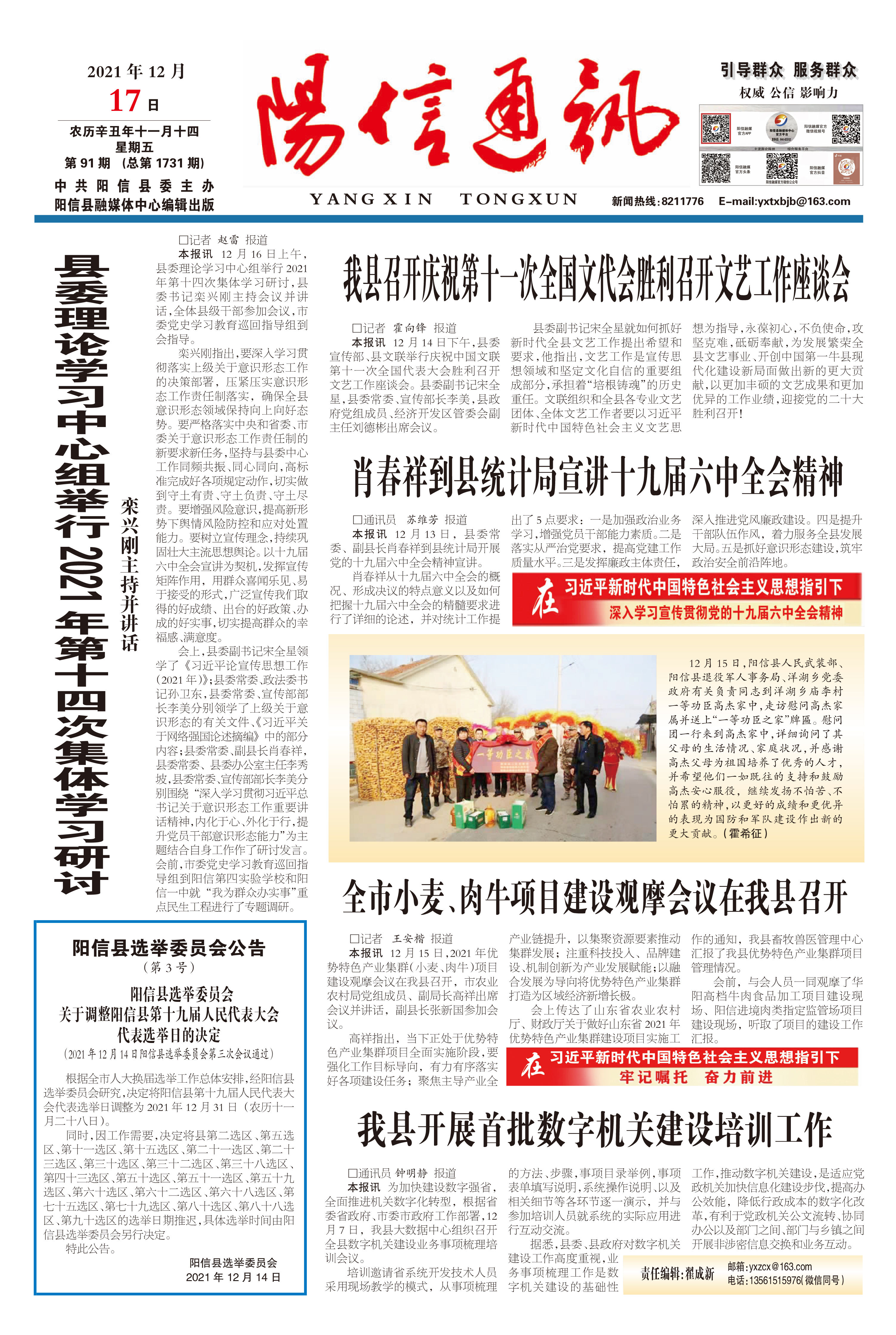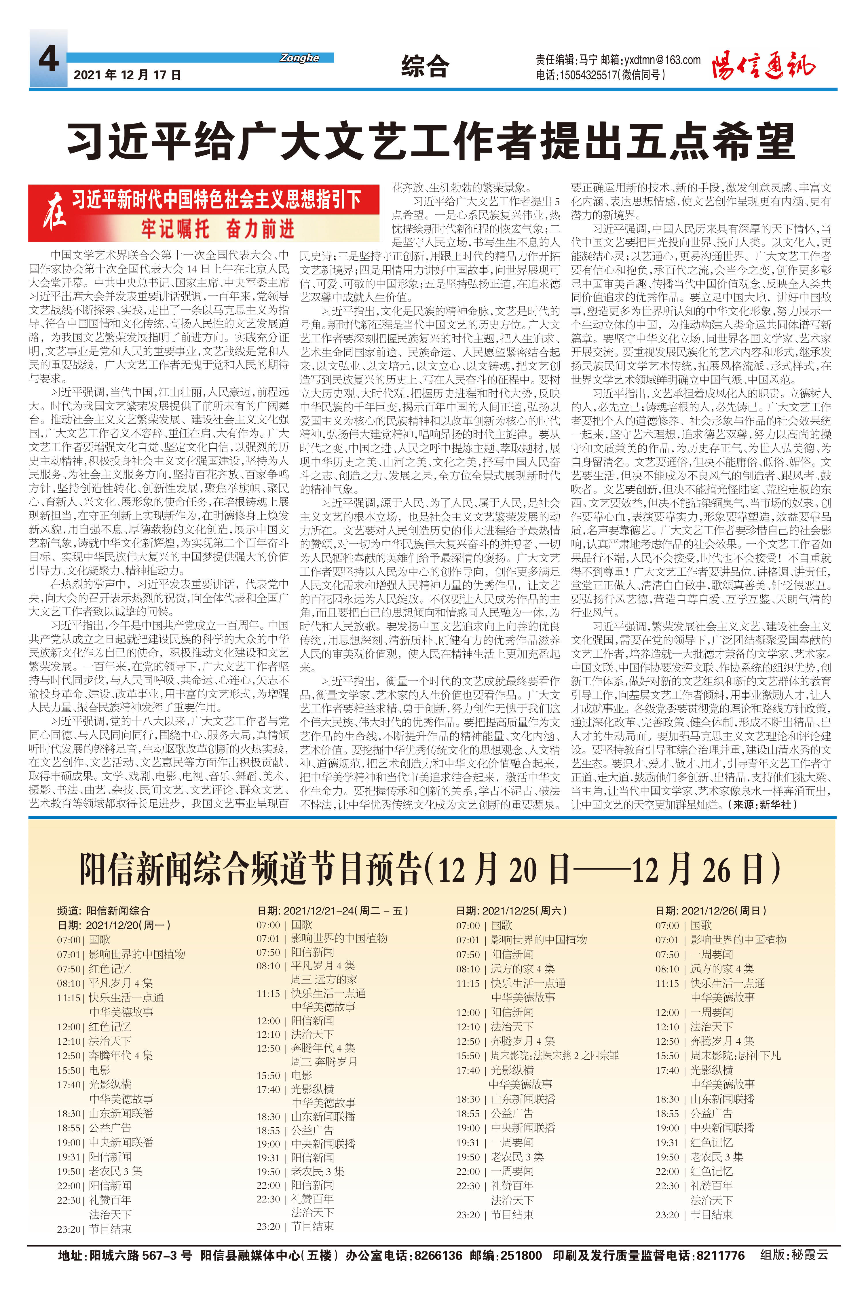 阳信新闻综合频道节目预告(12月20日——12月26日)