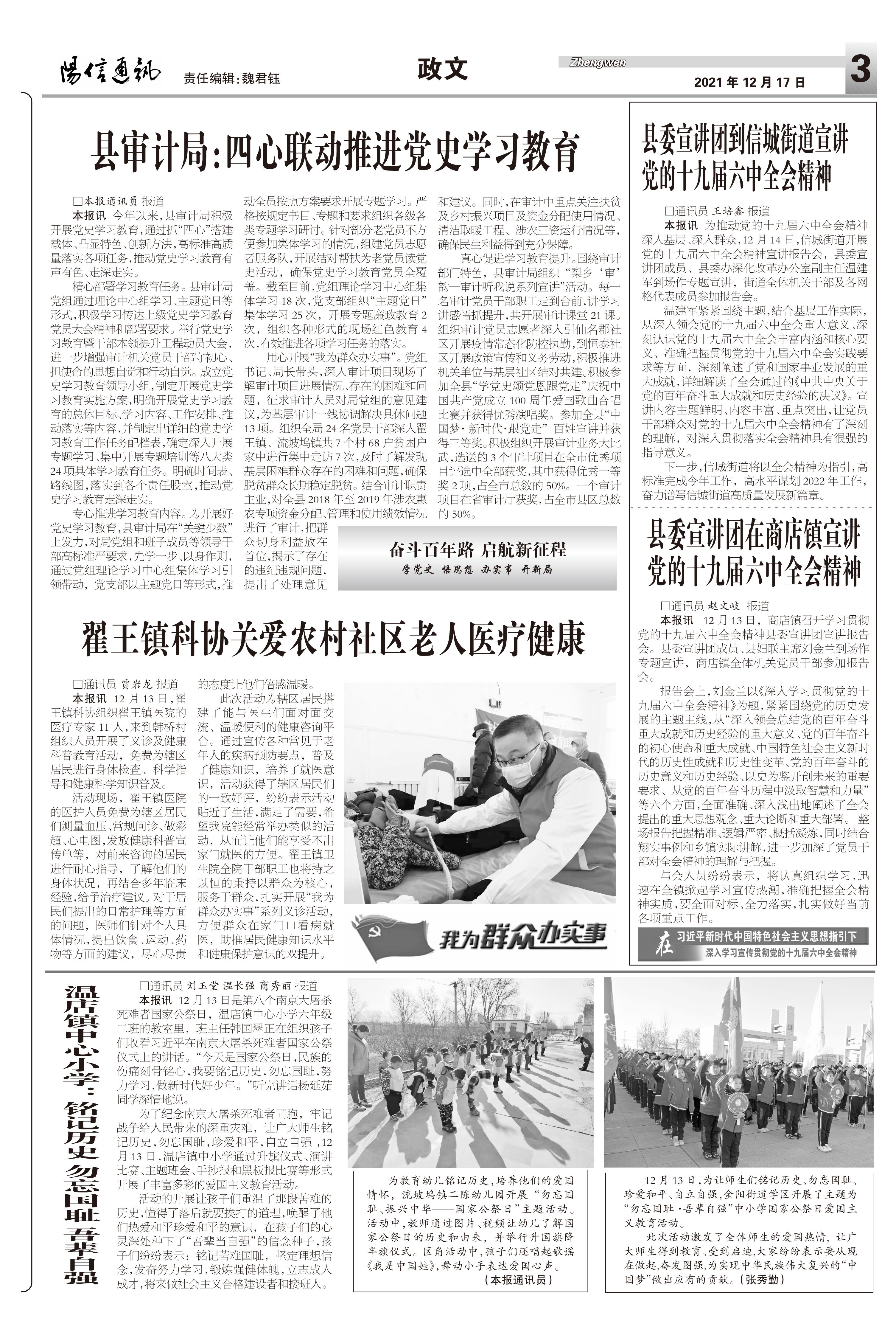 县委宣讲团在商店镇宣讲 党的十九届六中全会精神