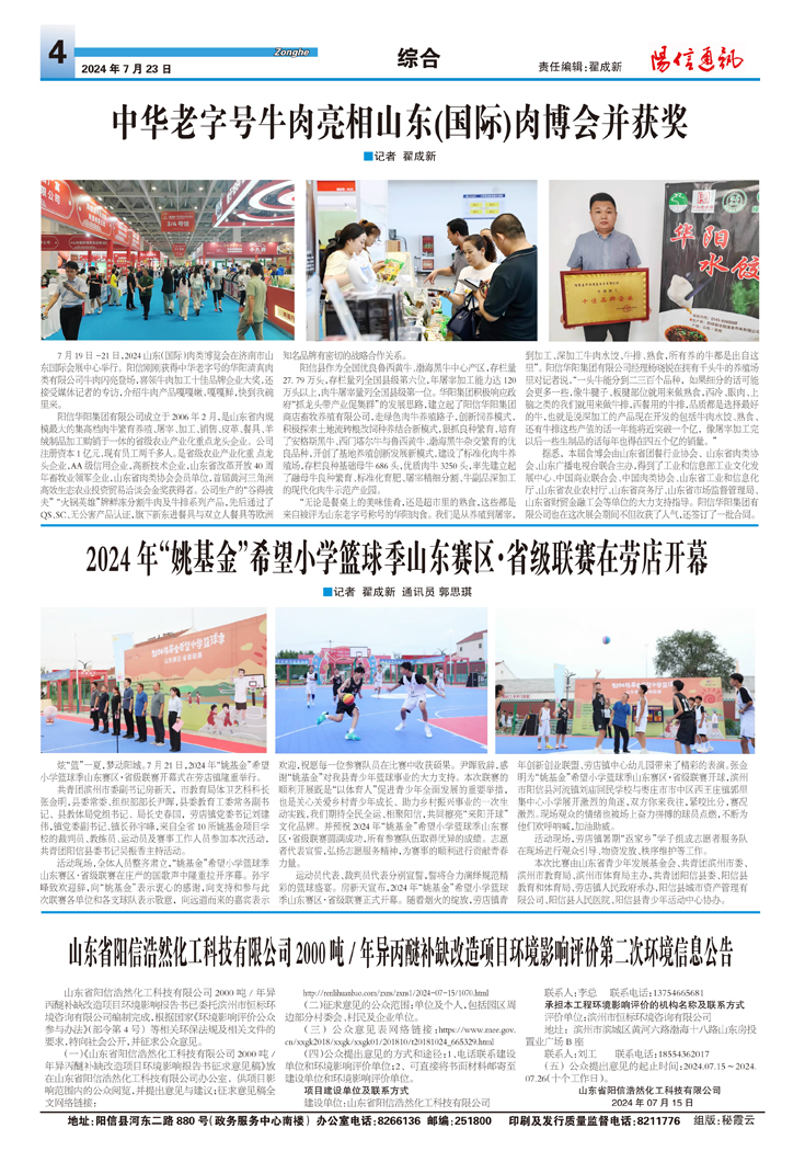山东省阳信浩然化工科技有限公司2000吨/年异丙醚补缺改造项目环境影响评价第二次环境信息公告