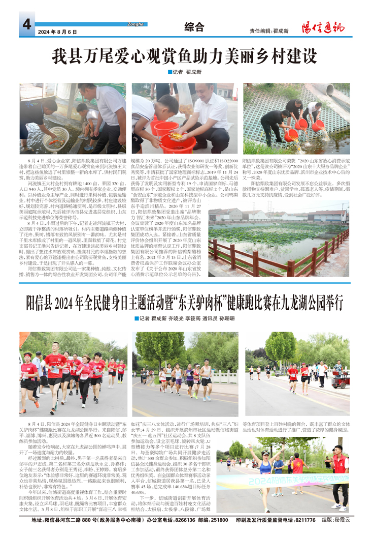 阳信县2024年全民健身日主题活动暨“东关驴肉杯”健康跑比赛在九龙湖公园举行