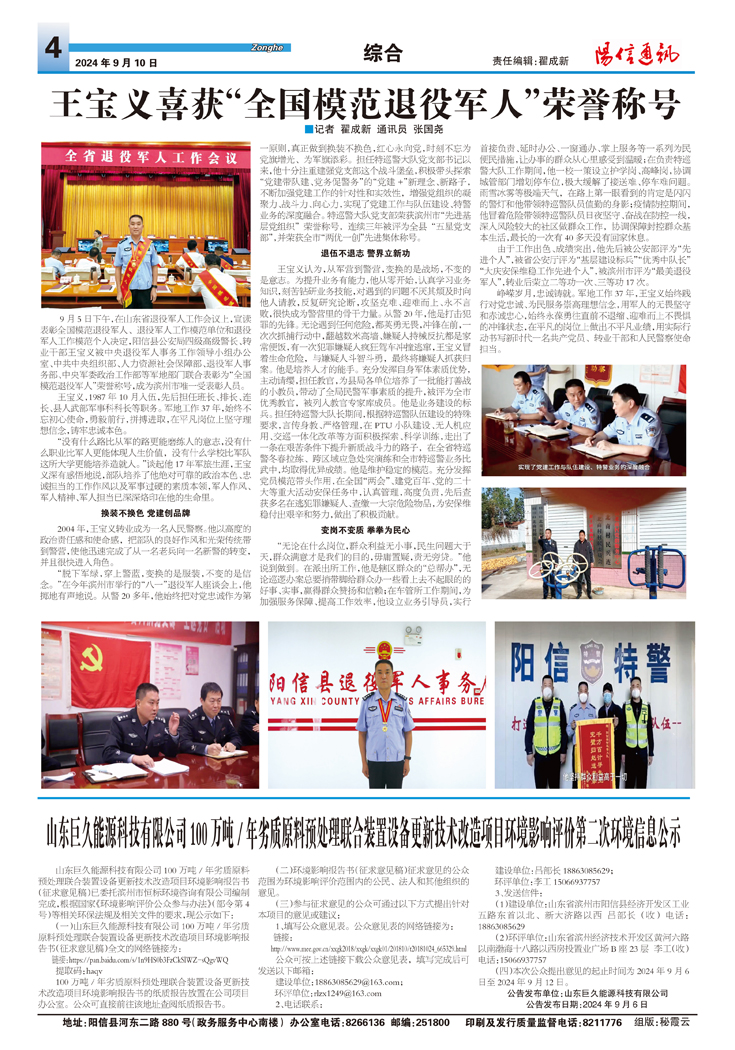 王宝义喜获“全国模范退役军人”荣誉称号