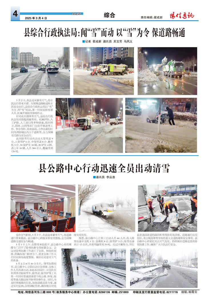 县综合行政执法局:闻“雪”而动 以“雪”为令 保道路畅通