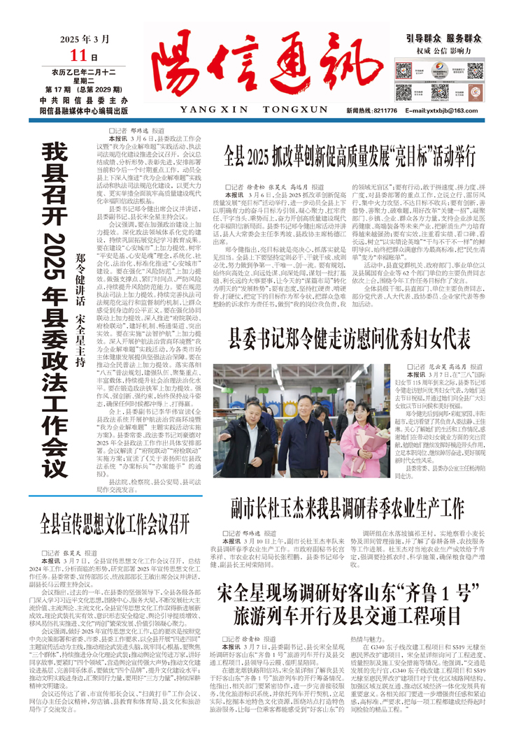 我县召开 2025年县委政法工作会议 郑令健讲话 宋全星主持