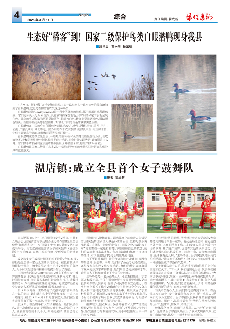 生态好“稀客”到!国家二级保护鸟类白眼潜鸭现身我县