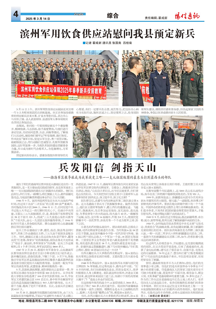 滨州军用饮食供应站慰问我县预定新兵