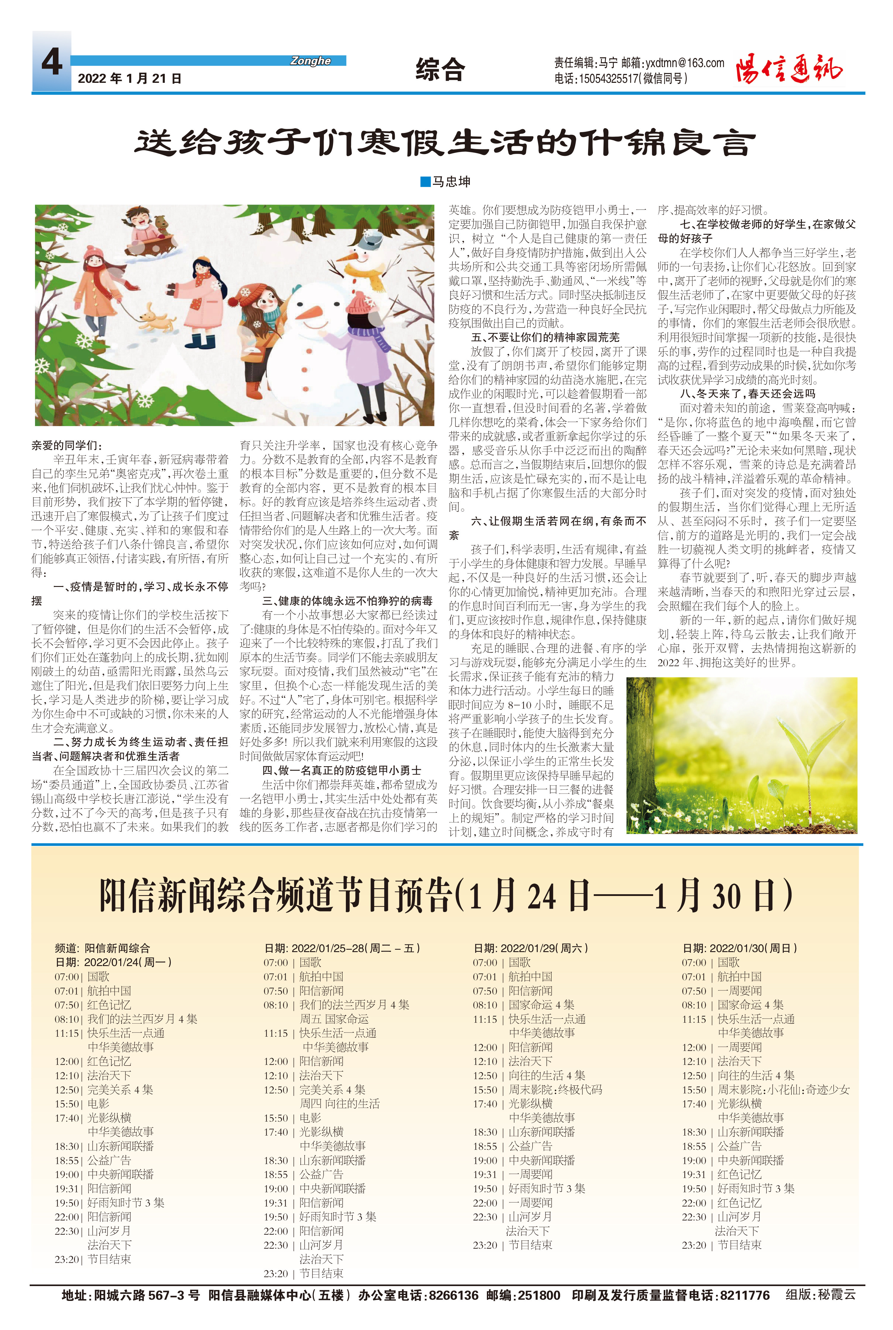 阳信新闻综合频道节目预告(1月24日——1月30日)