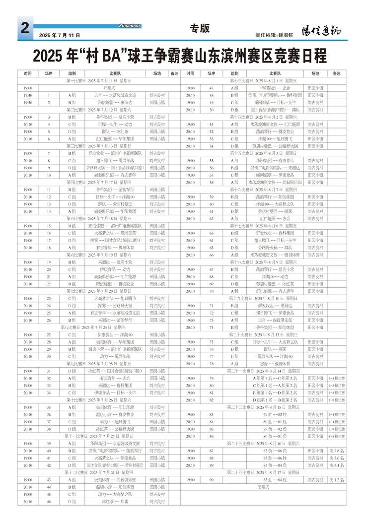 2025年“村BA”球王争霸赛山东滨州赛区竞赛日程