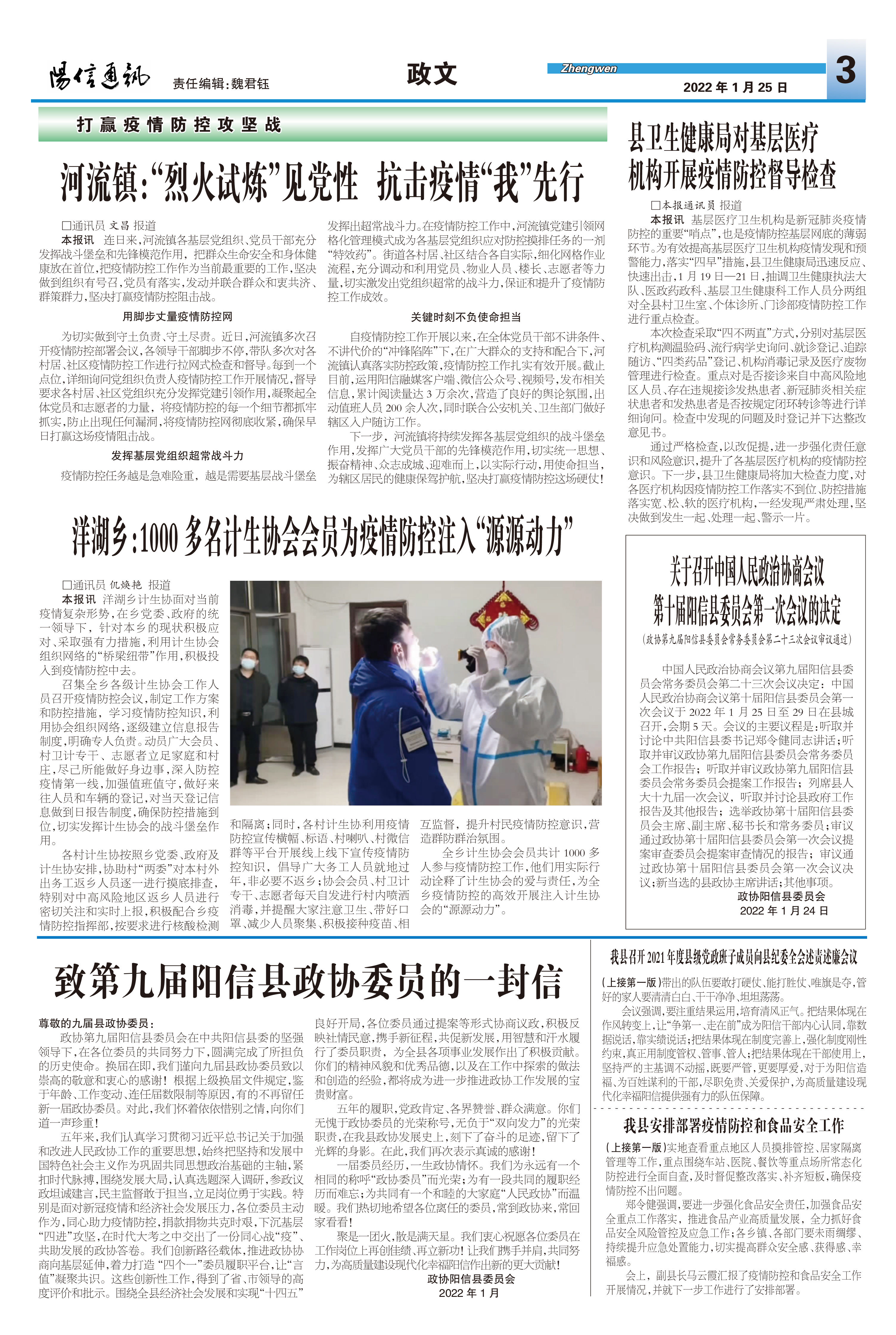 致第九届阳信县政协委员的一封信