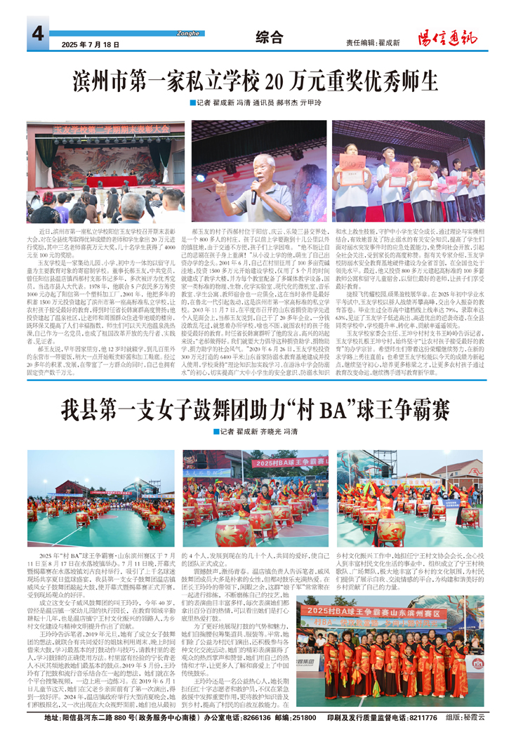 滨州市第一家私立学校20万元重奖优秀师生