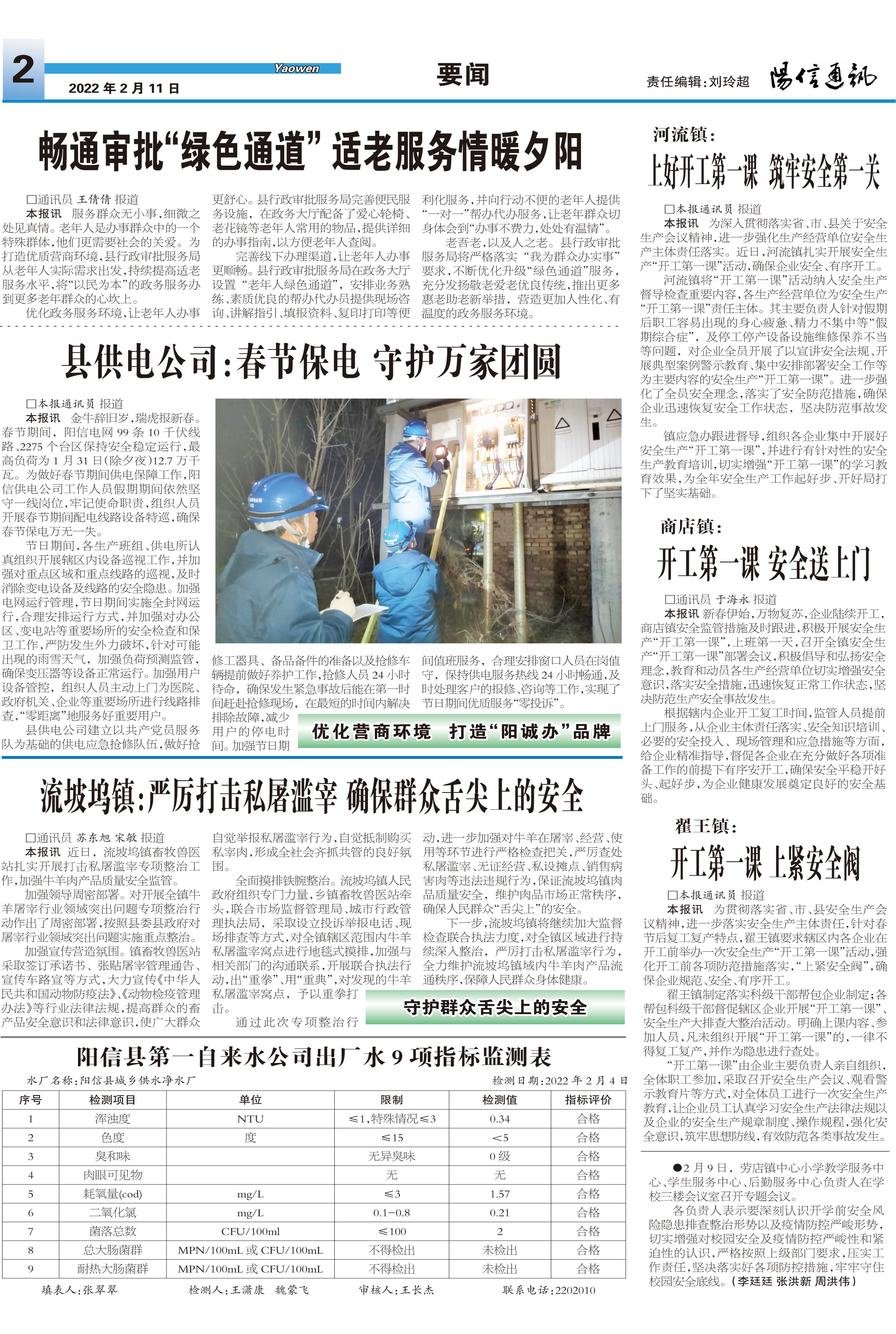 阳信县第一自来水公司出厂水9项指标监测表