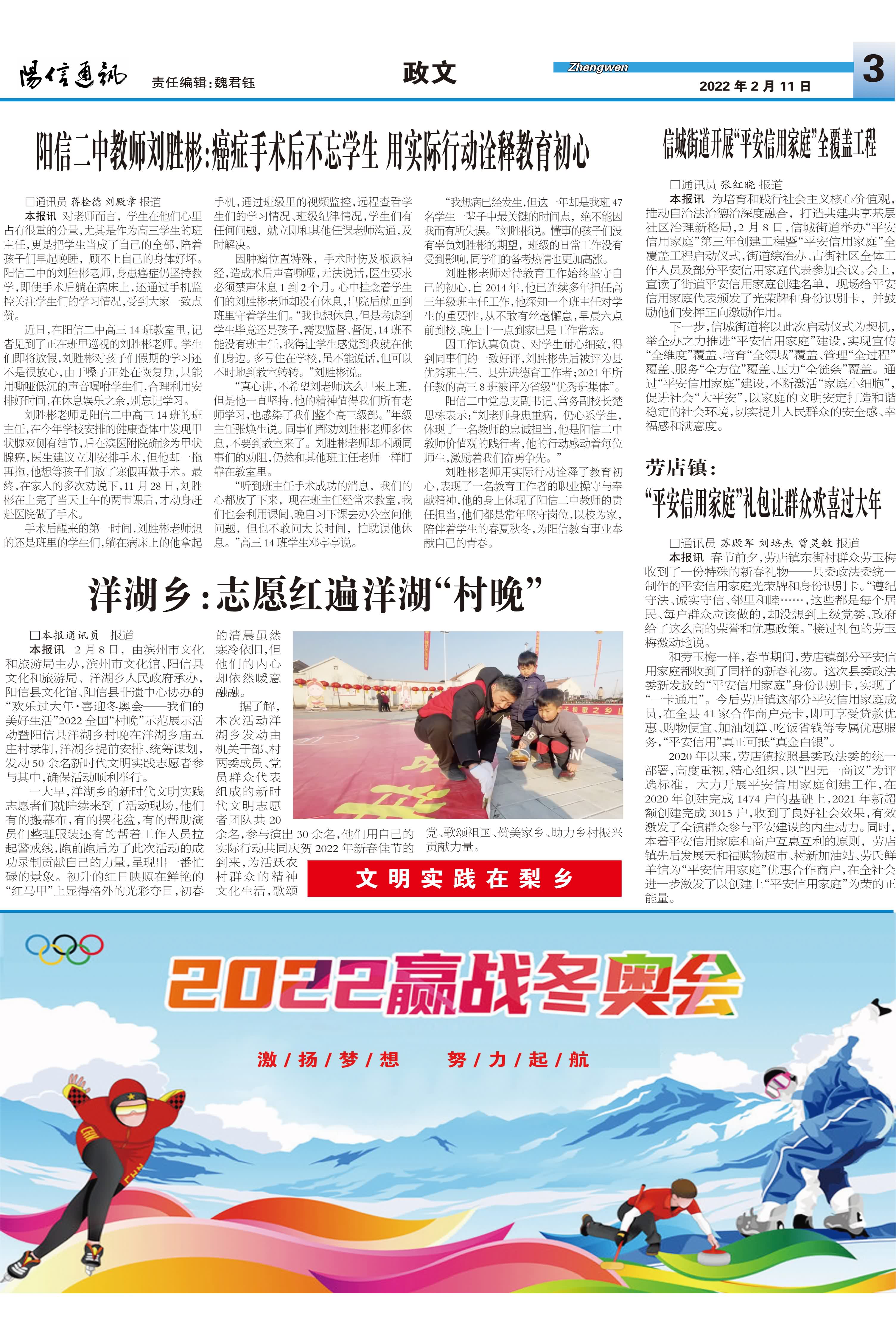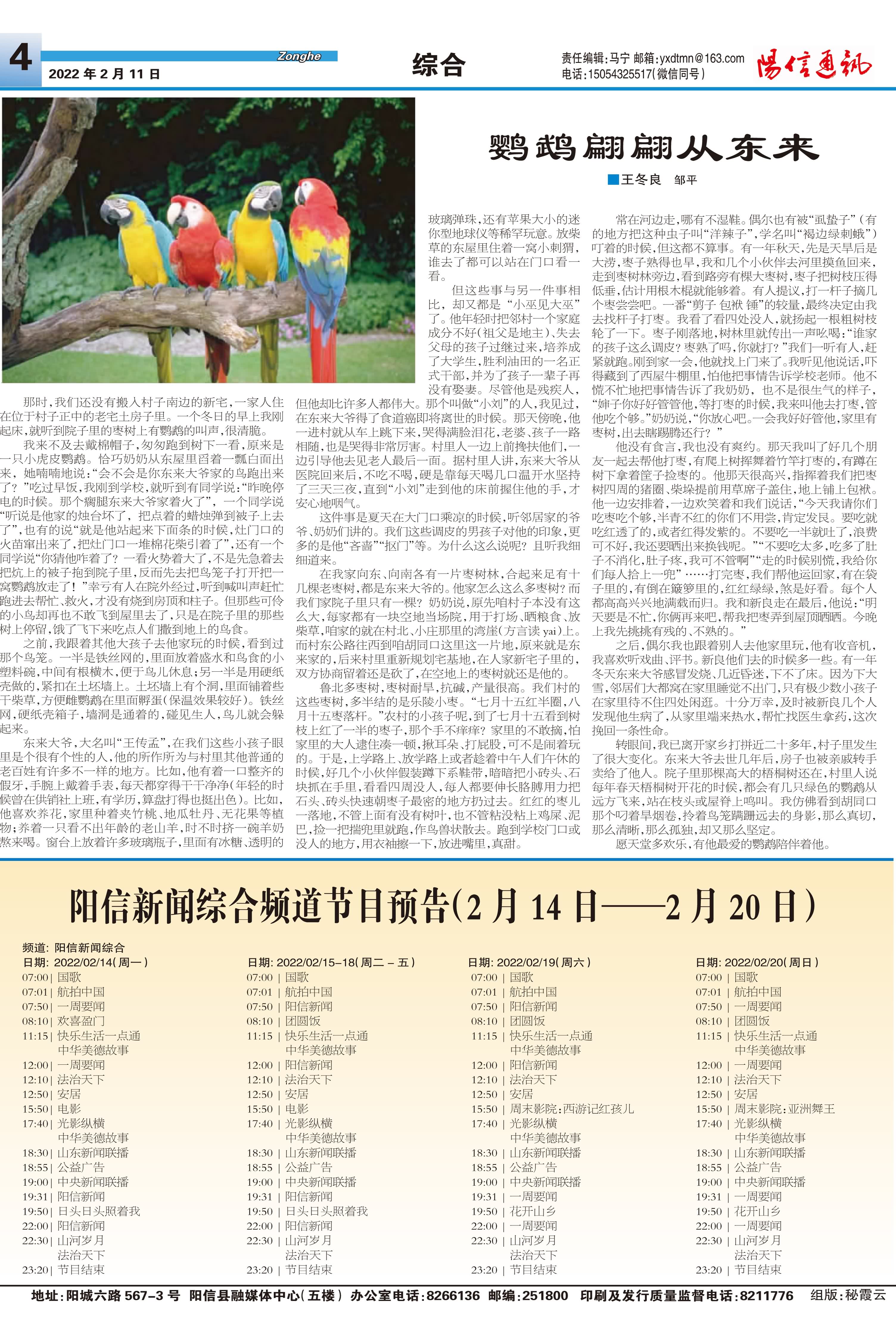 阳信新闻综合频道节目预告(2月14日——2月20日)
