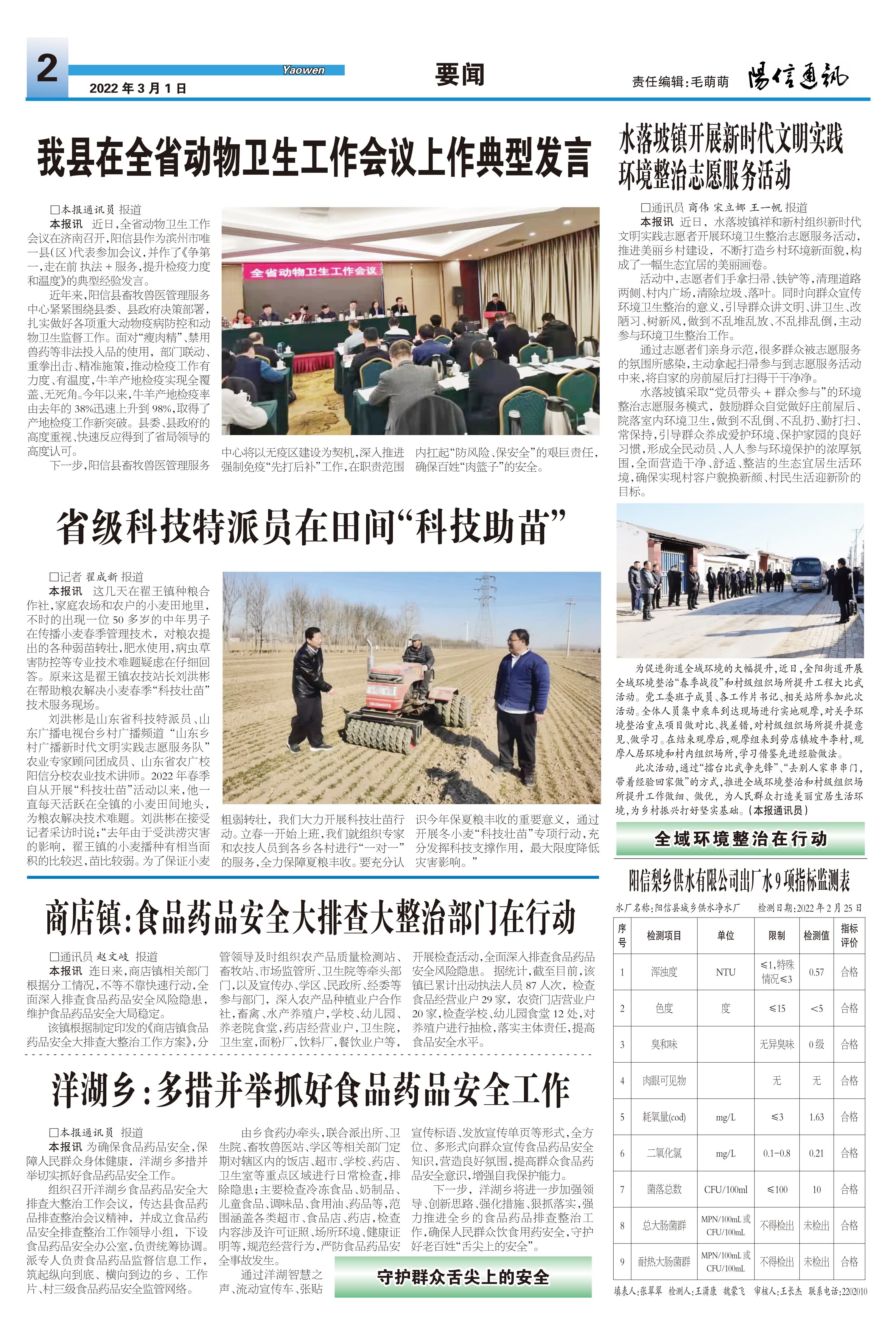 阳信梨乡供水有限公司出厂水9项指标监测表
