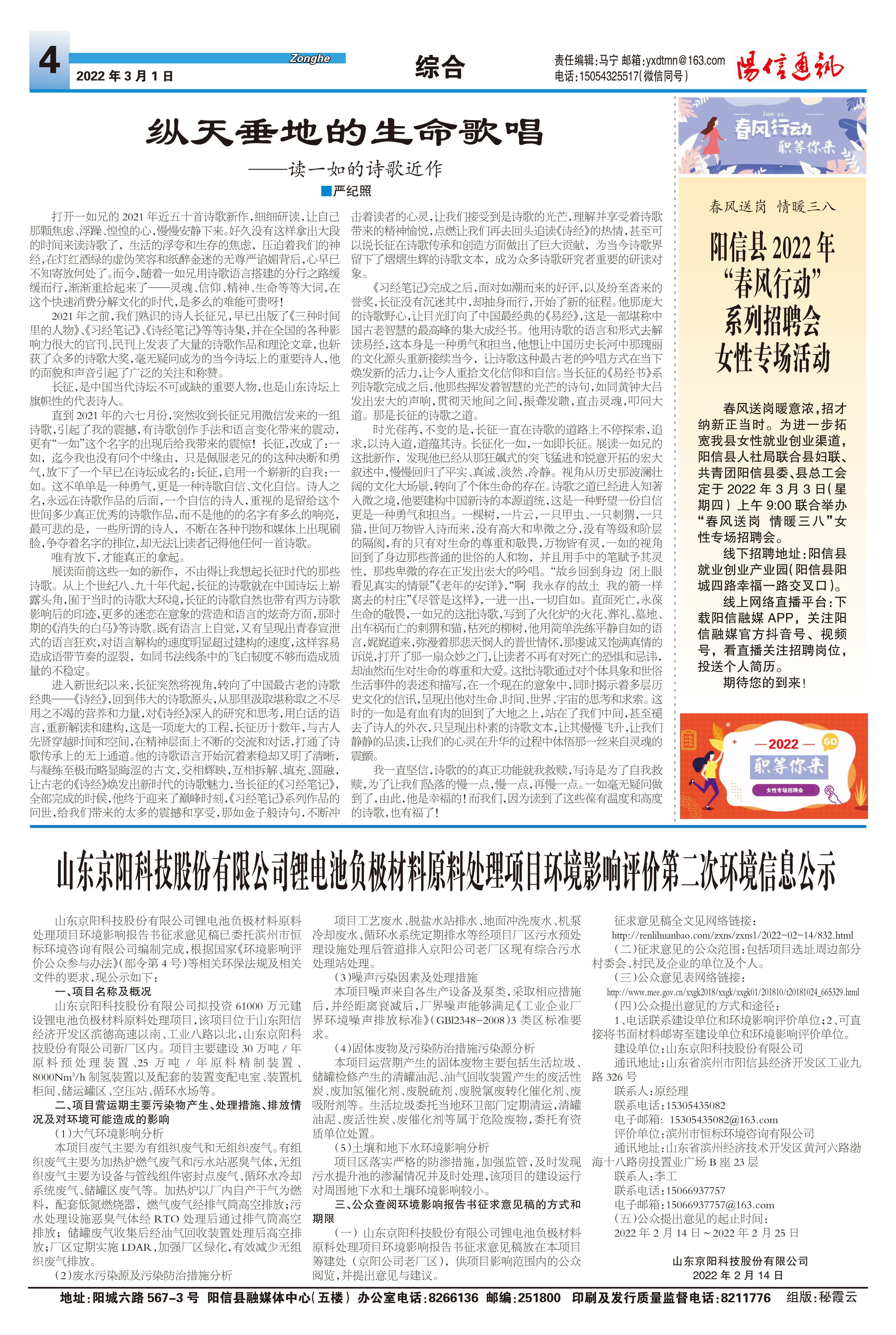 山东京阳科技股份有限公司锂电池负极材料原料处理项目环境影响评价第二次环境信息公示
