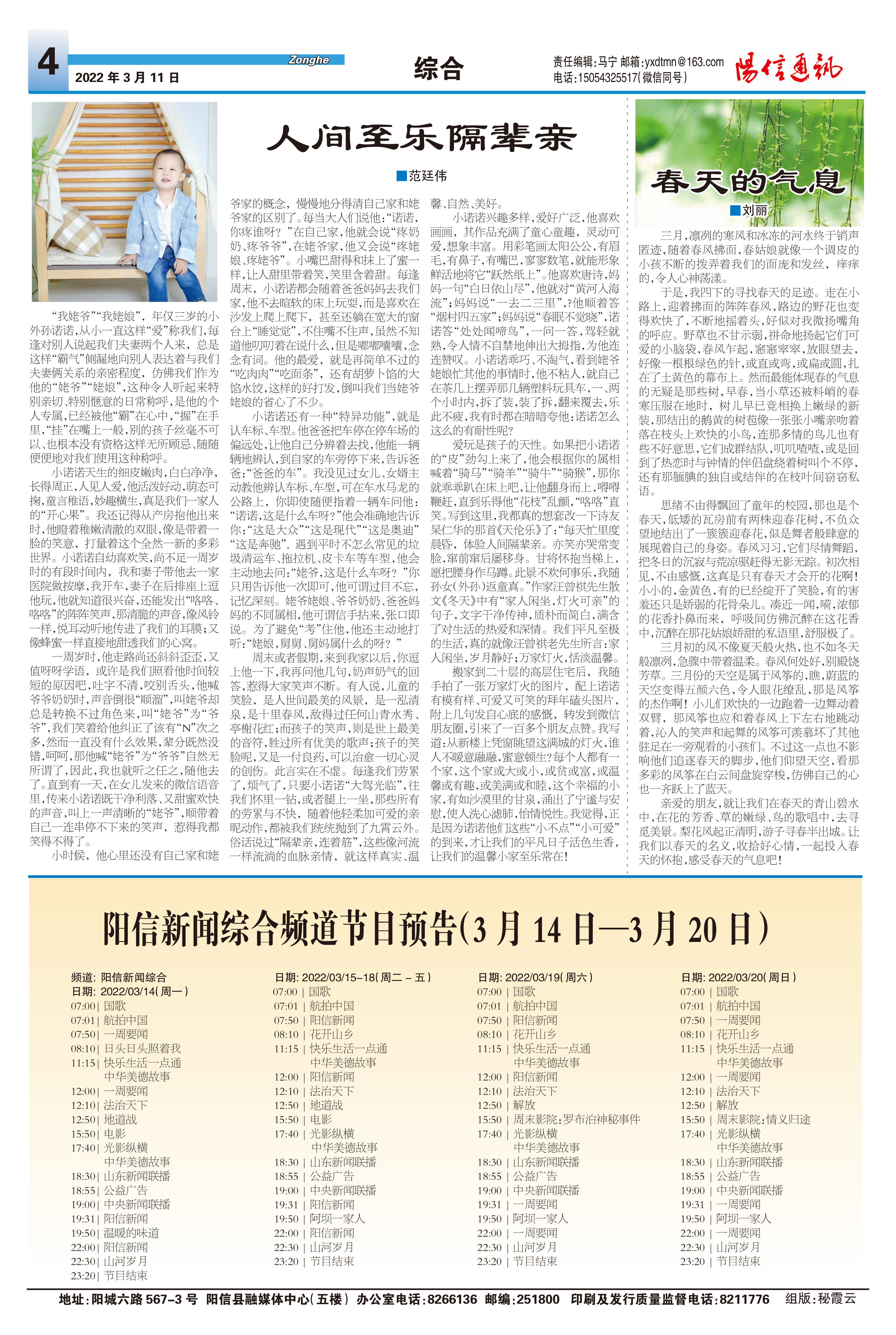 阳信新闻综合频道节目预告(3月14日—3月20日)