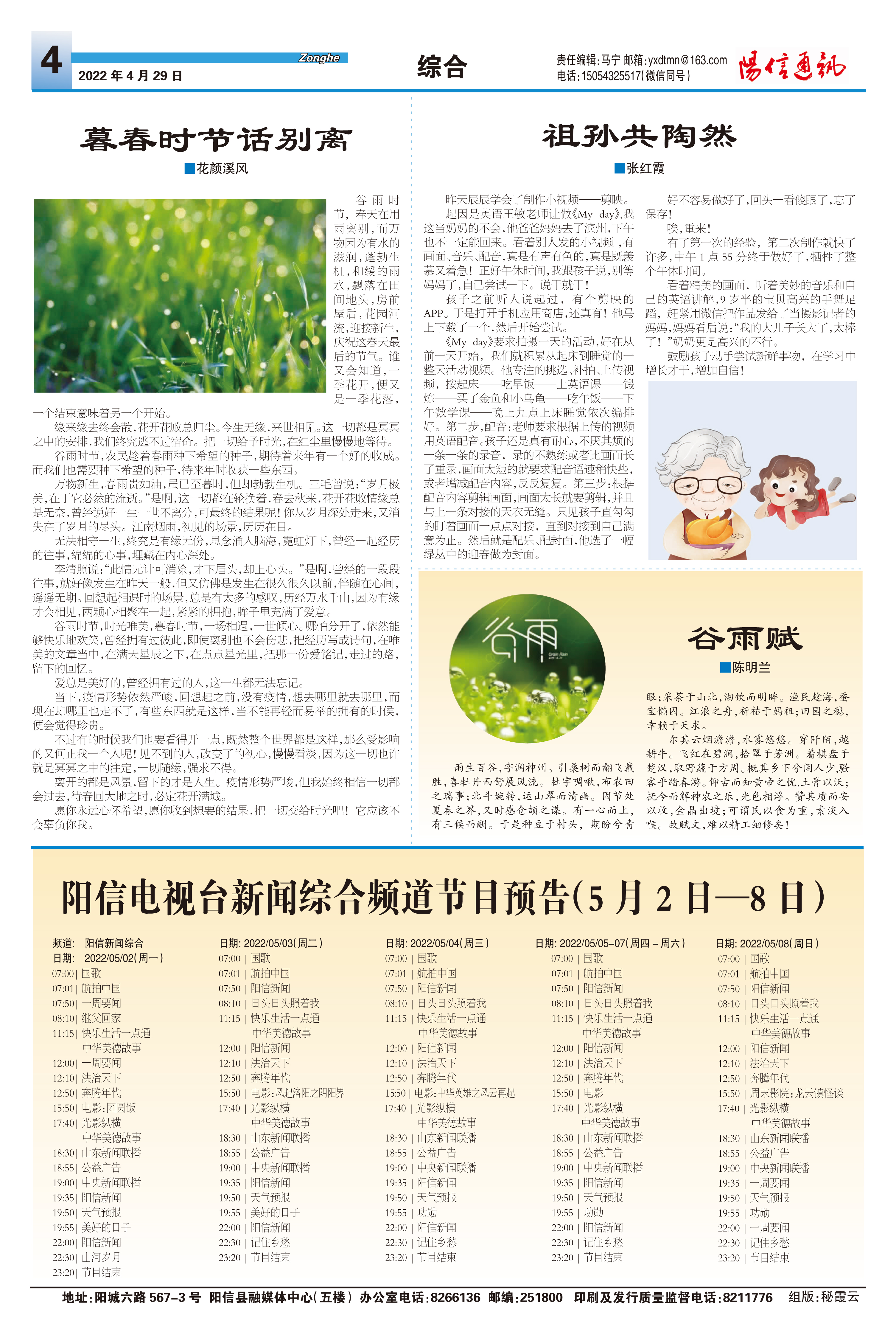 阳信电视台新闻综合频道节目预告(5月2日—8日)