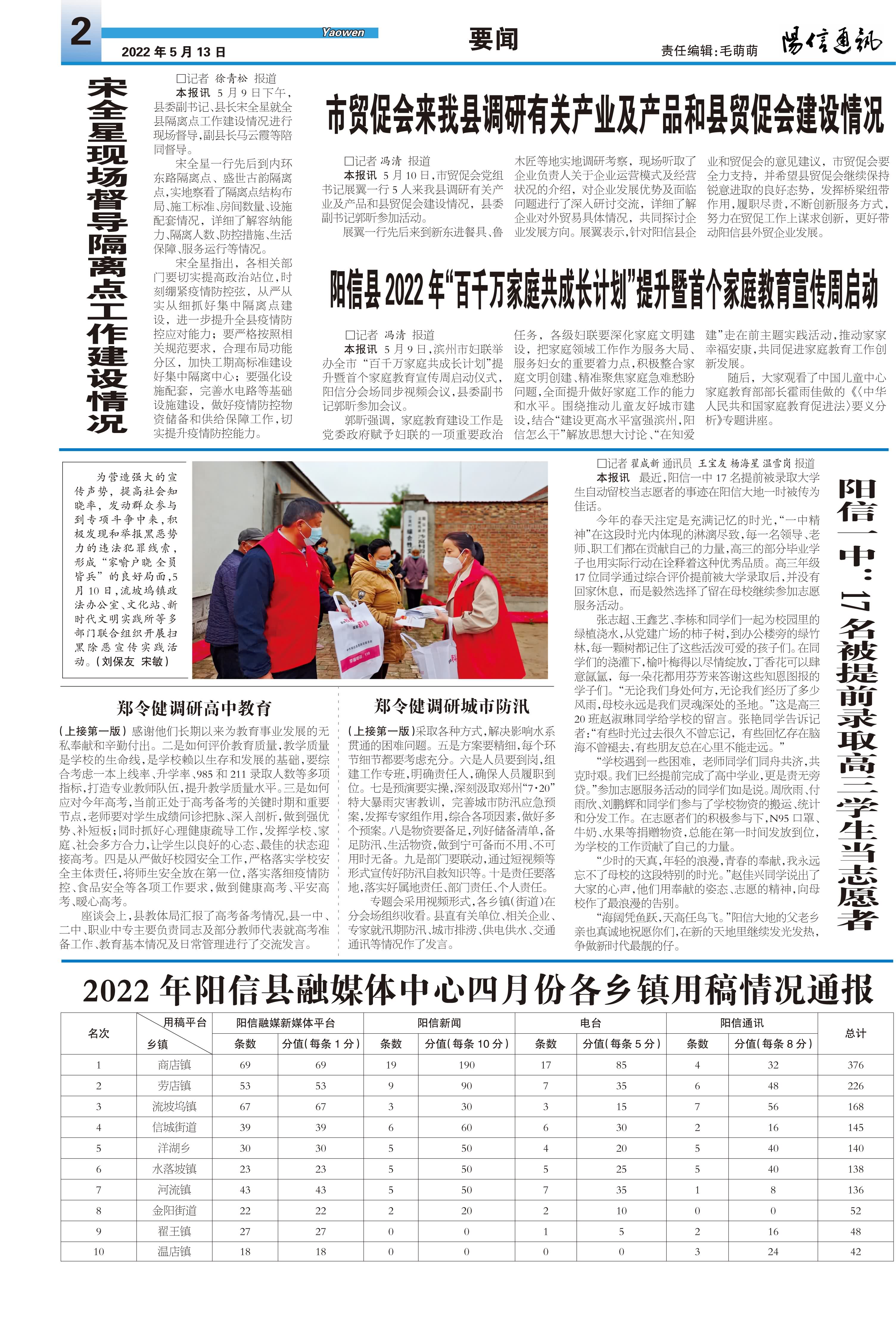 2022年阳信县融媒体中心四月份各乡镇用稿情况通报