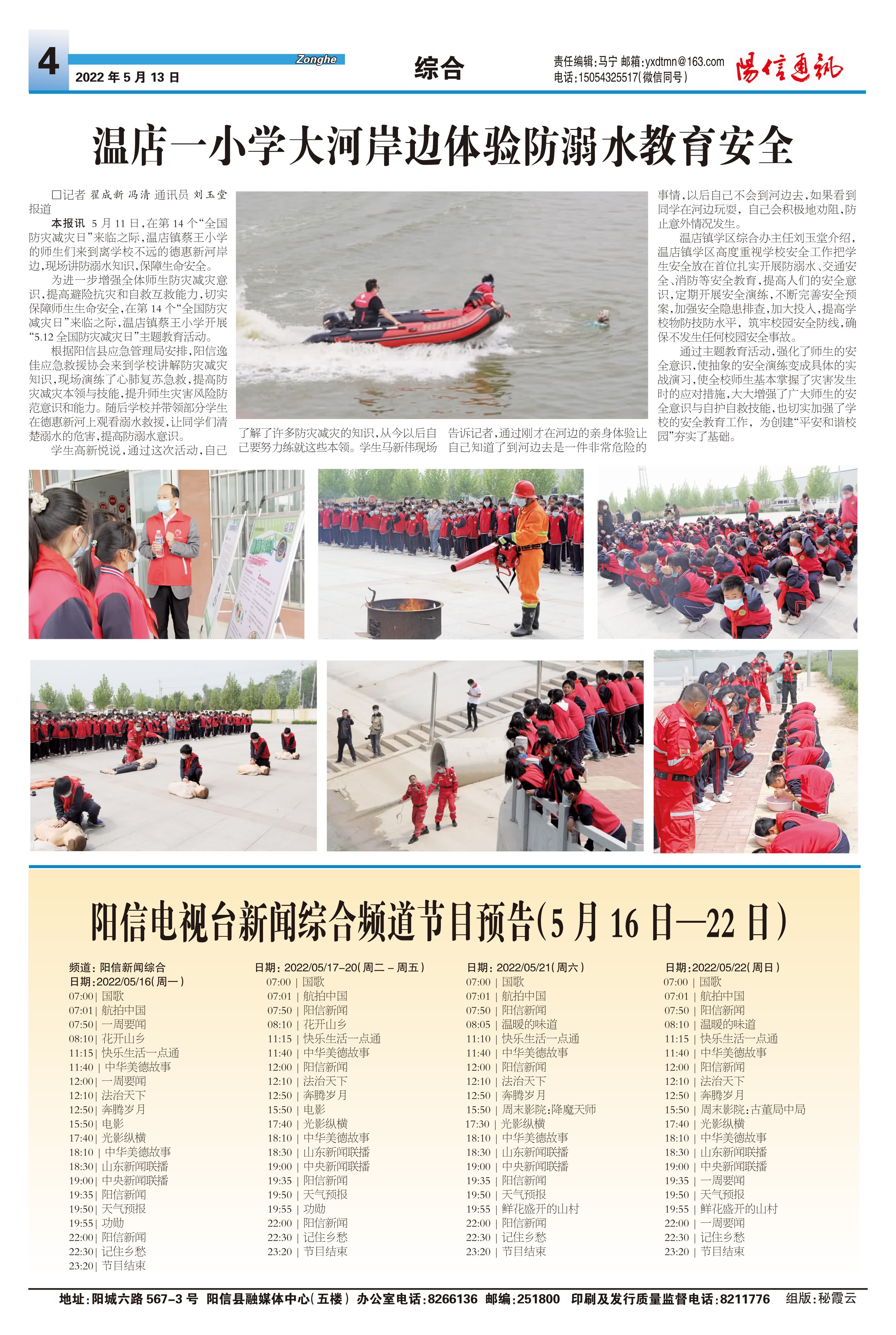 阳信电视台新闻综合频道节目预告(5月16日—22日)