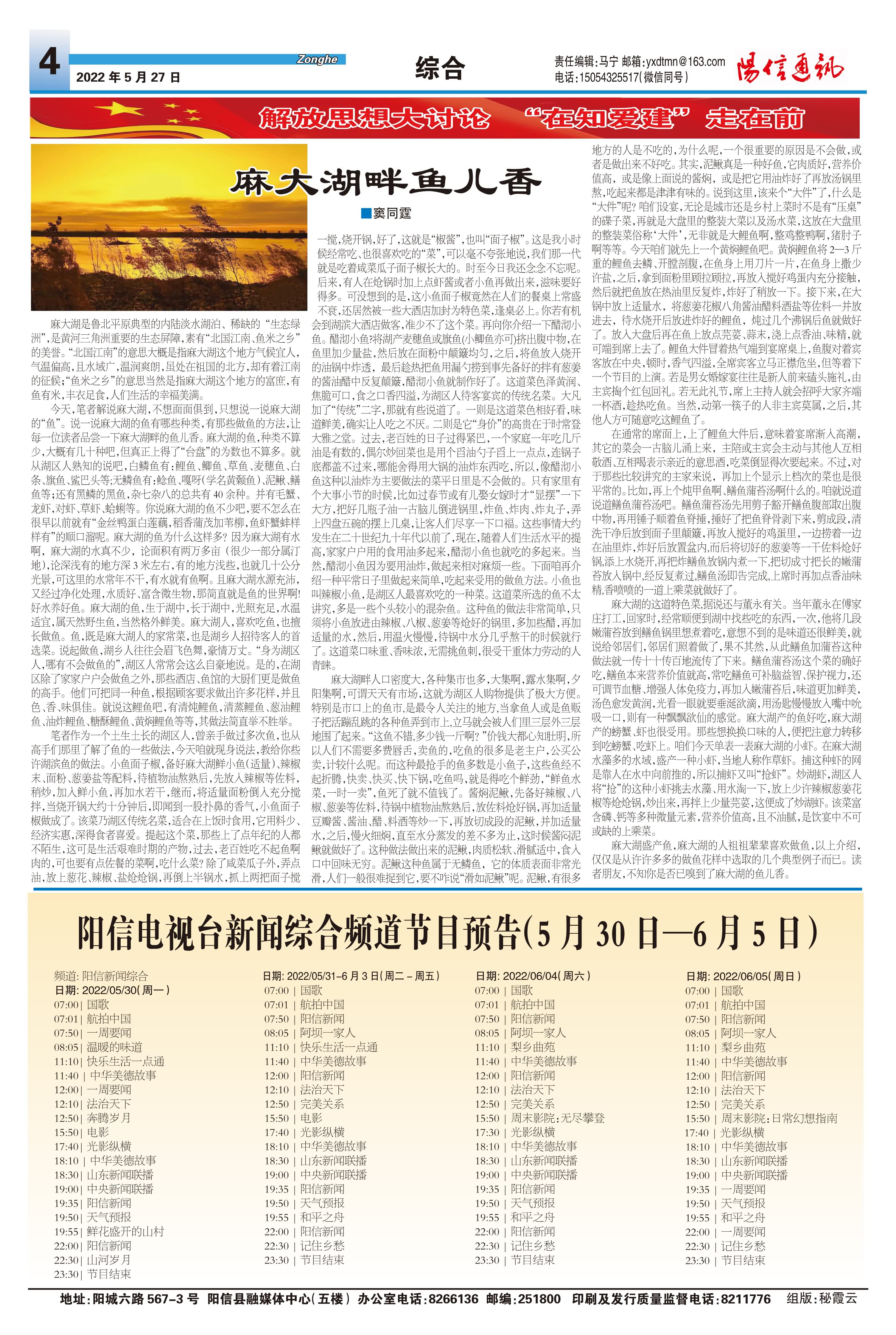 阳信电视台新闻综合频道节目预告(5月30日—6月5日)