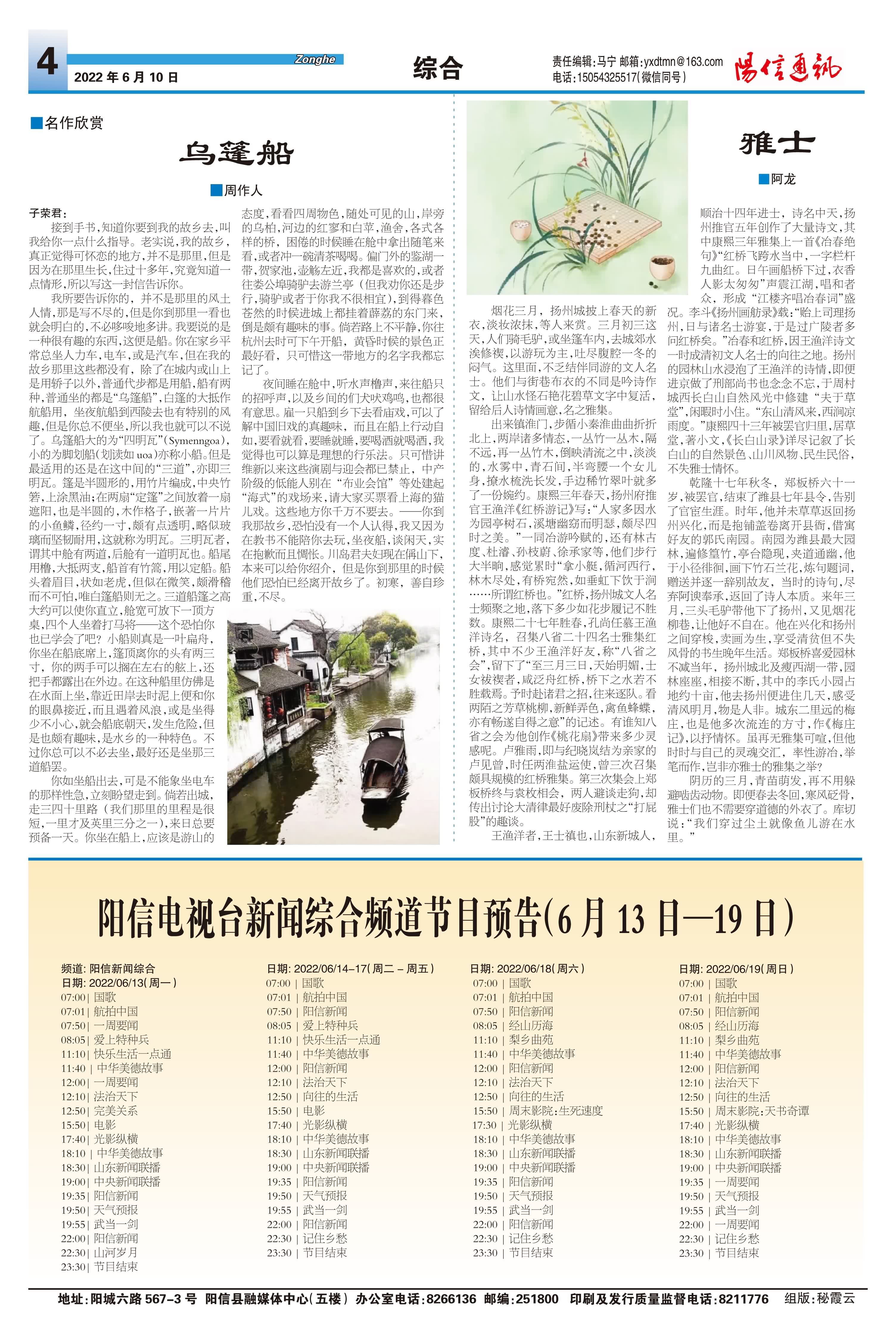 阳信电视台新闻综合频道节目预告(6月13日—19日)