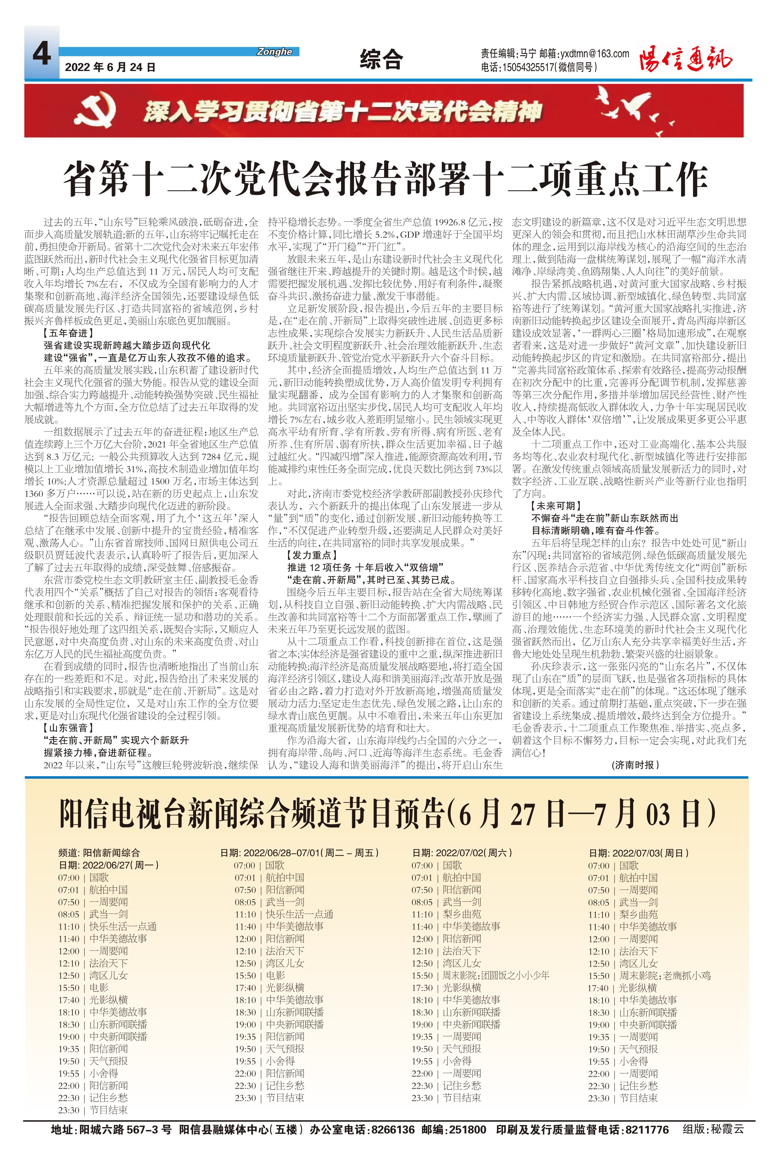 阳信电视台新闻综合频道节目预告(6月27日—7月03日)