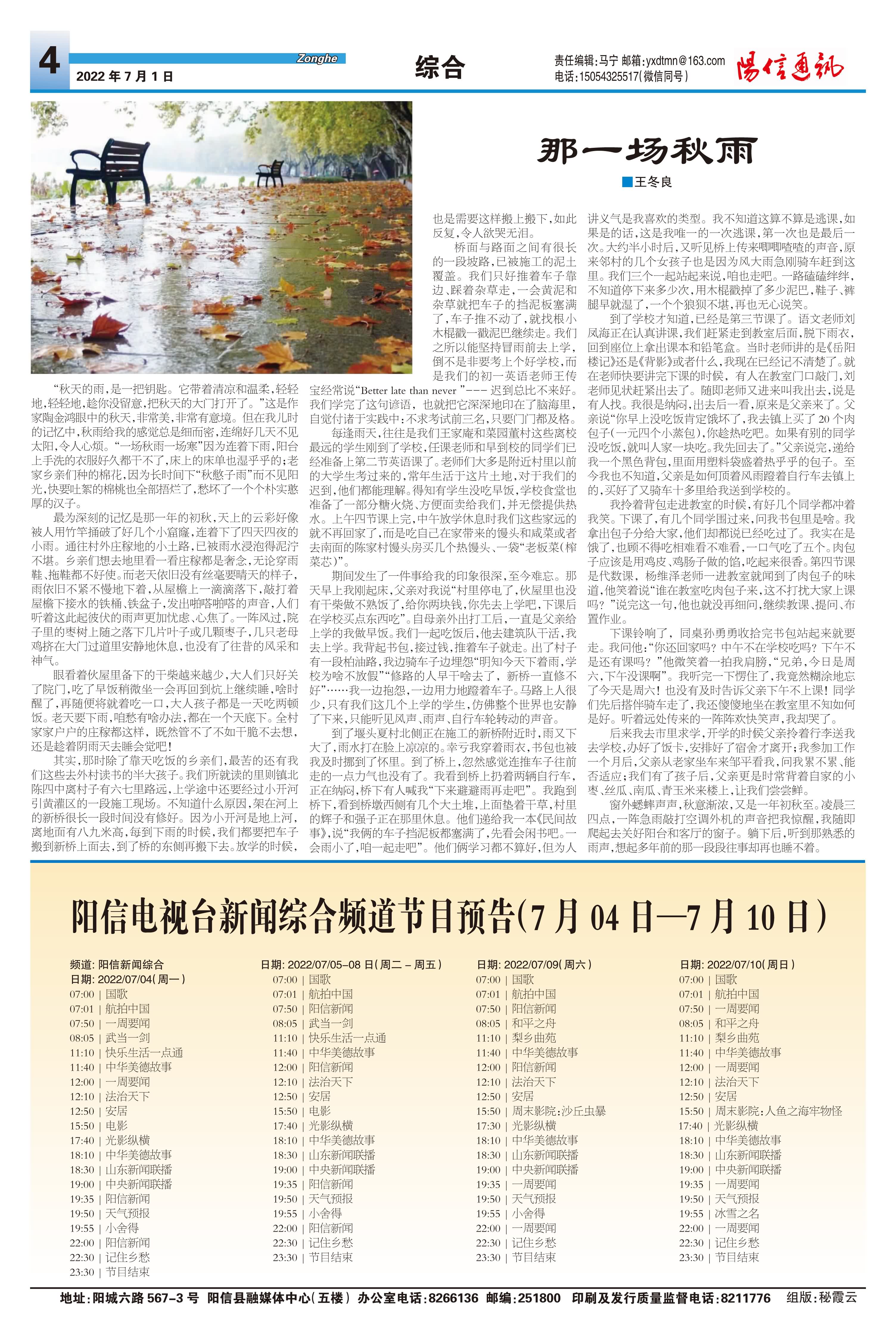 阳信电视台新闻综合频道节目预告(7月04日—7月10日)