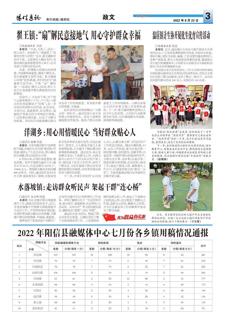 2022年阳信县融媒体中心七月份各乡镇用稿情况通报