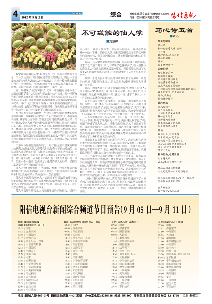 阳信电视台新闻综合频道节目预告(9月05日—9月11日)