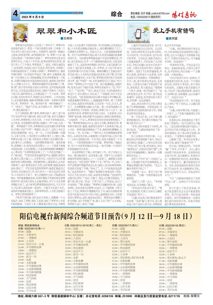 阳信电视台新闻综合频道节目预告(9月12日—9月18日)
