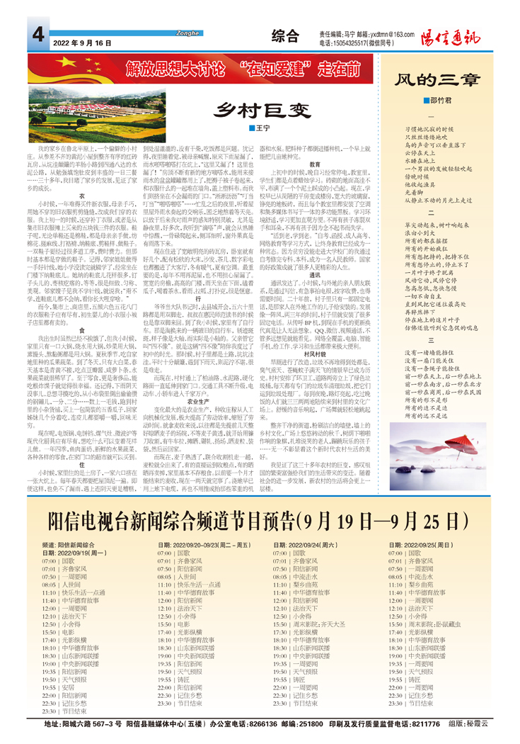 阳信电视台新闻综合频道节目预告(9月19日—9月25日)